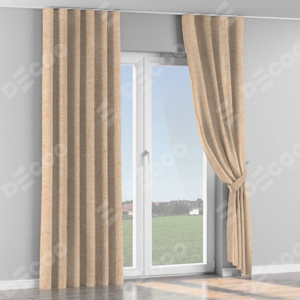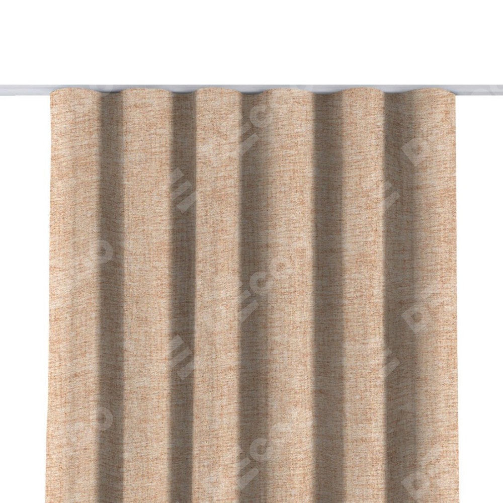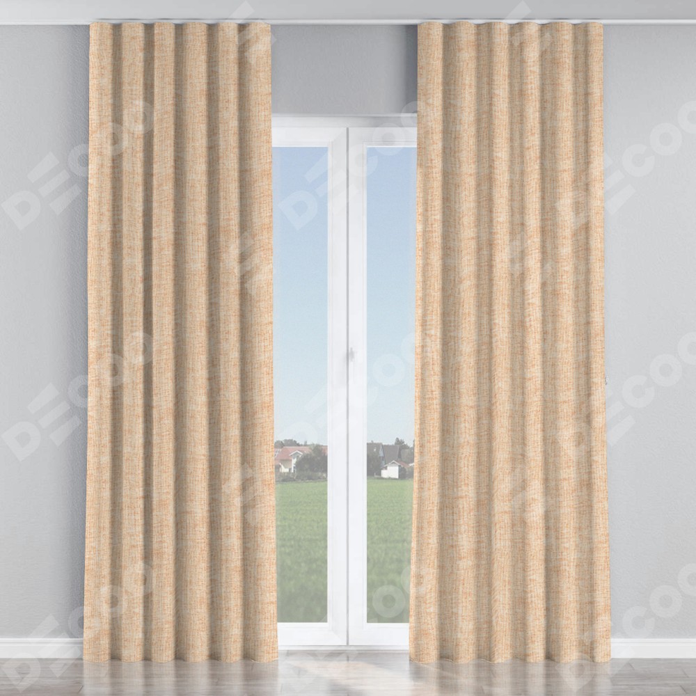 Комплект прямых штор, от производителя «Cortin», пошиты из ткани рогожка димаут персиковый, артикул ткани 91016. С изнаночной стороны в верхней части штор пристрачивается шторная лента с декоративными складками «Волна». Для создания элегантных складок прямые шторы шьются по стандарту с коэффициентом 1:2 (на 100 см. ширины проёма 200 см. ширины ткани).