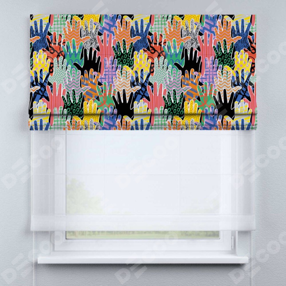 Римская штора «Кортин» день-ночь «Коллаж поп-арт» отлично подойдёт для интерьера: в кухню, в гостиную и в детскую.