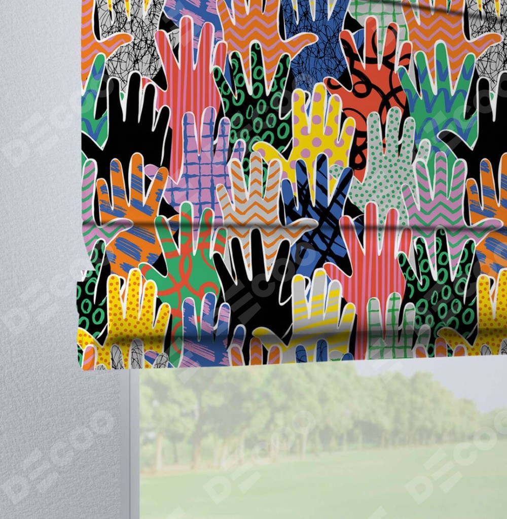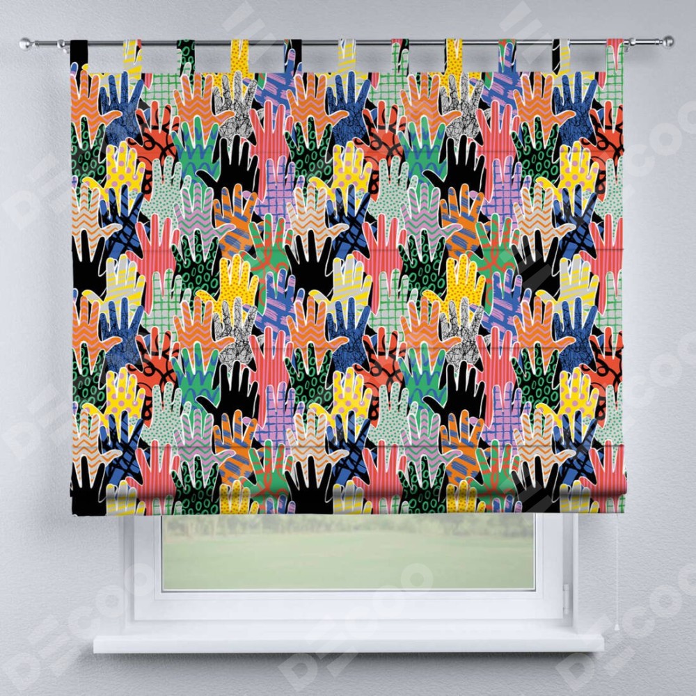Римская штора на петлях «Коллаж поп-арт» отлично подойдёт для интерьера: подростку в комнату, в детскую и в кухню.