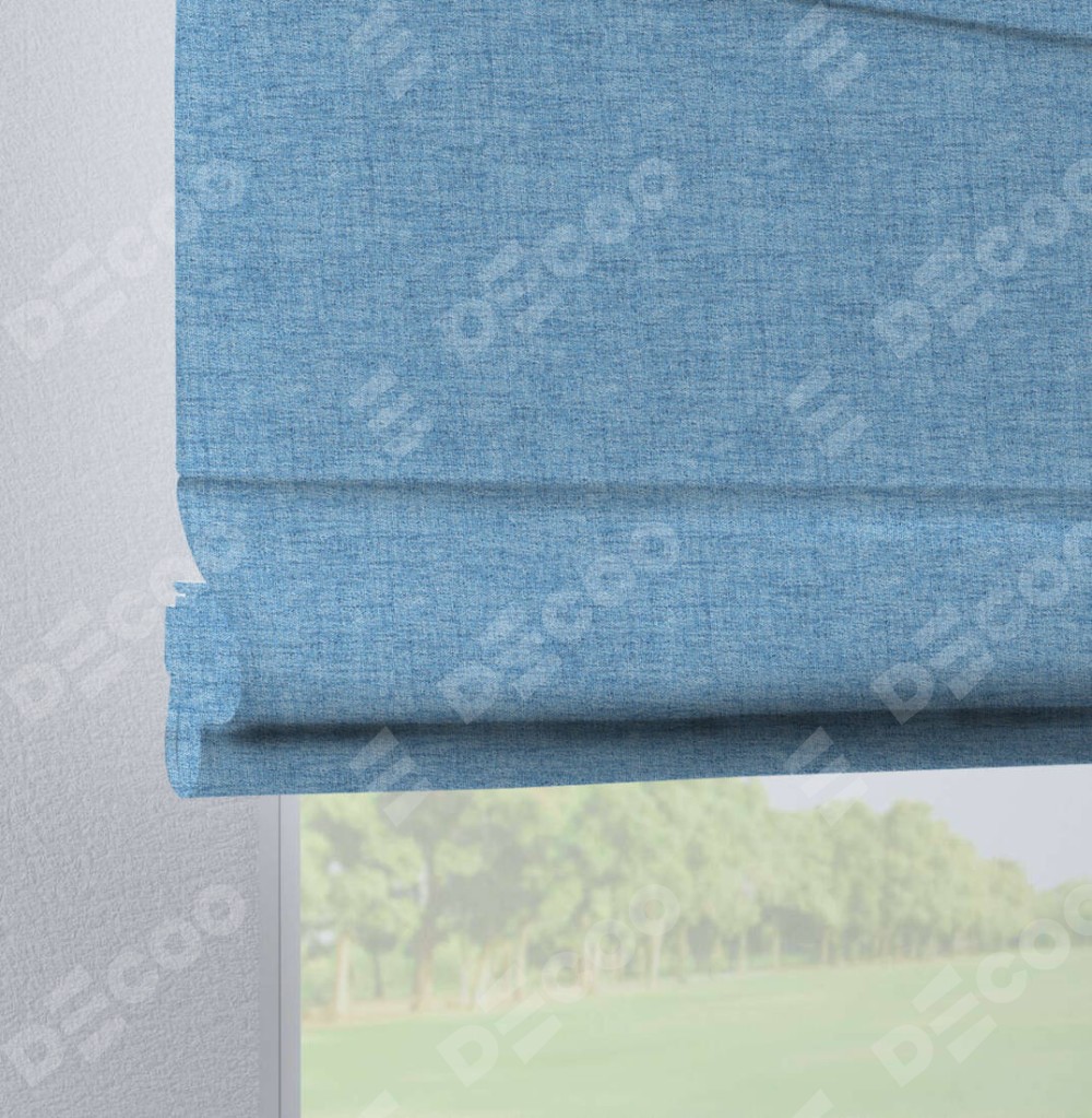 Римская штора «Кортин», рогожка димаут голубой, на петлях