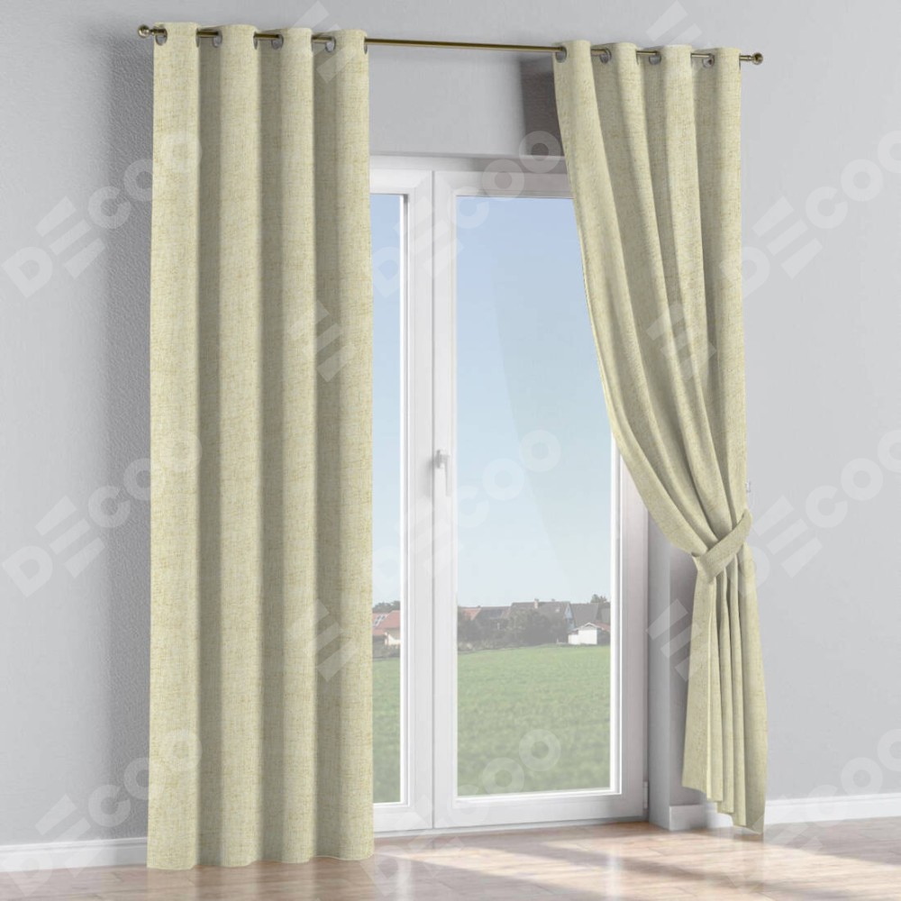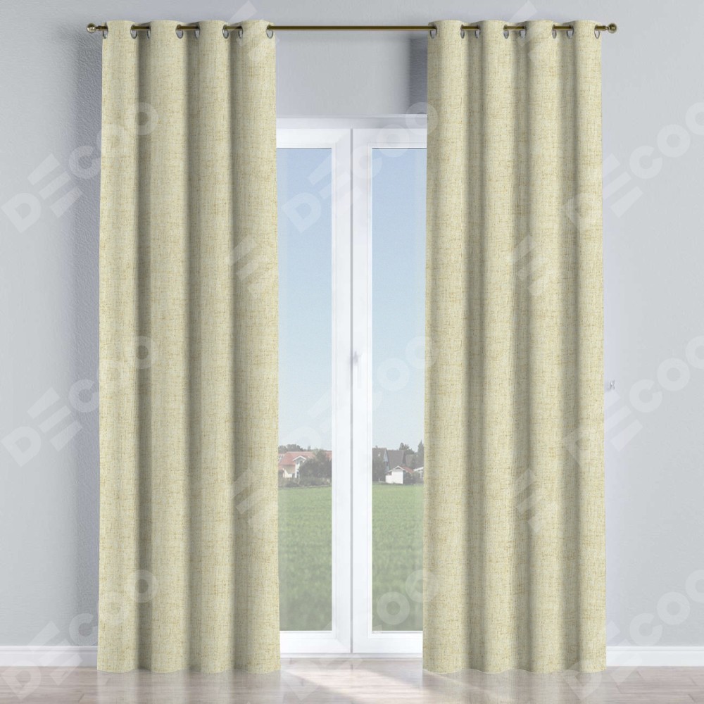 Комплект прямых штор, от производителя «Cortin», пошиты из ткани рогожка димаут золотой песок, артикул ткани 91015. Данная модель пошита на люверсах, комплектуется на выбор круглым карнизом и подходит для монтажа на стену или потолок. Прямые шторы на люверсах шьются по стандарту с коэффициентом 1/2 (на 100 см. ширины проёма 200 см. ширины ткани), отличительным преимуществом данной модели является простой способ монтажа. Достаточно повесить ее на трубу и штора готова!