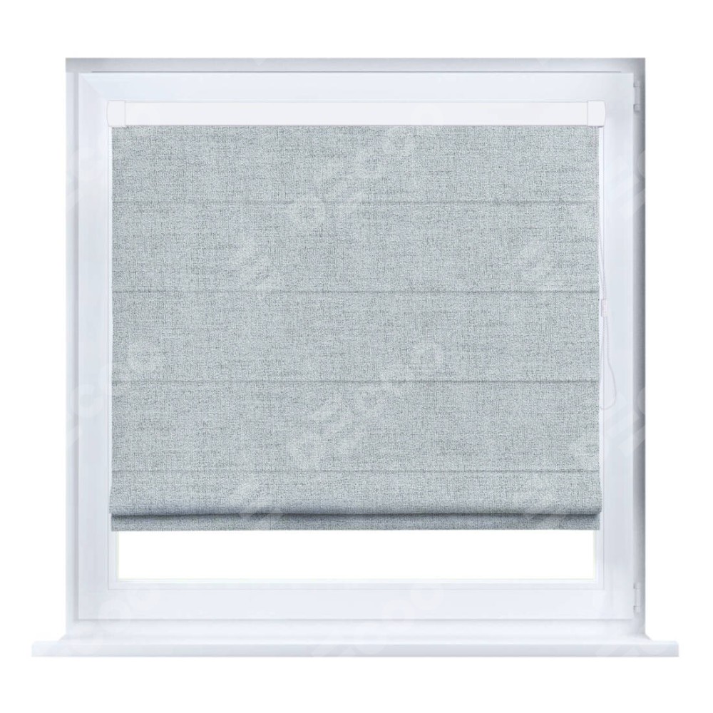 Римская штора производителя «Cortin», устанавливается на створку окна, пошита из ткани рогожка димаут серый, артикул 91027. Штора шьётся по индивидуальным размерам, для данного типа римской шторы возможная ширина от 35 до 150 см., высота до 250 см.