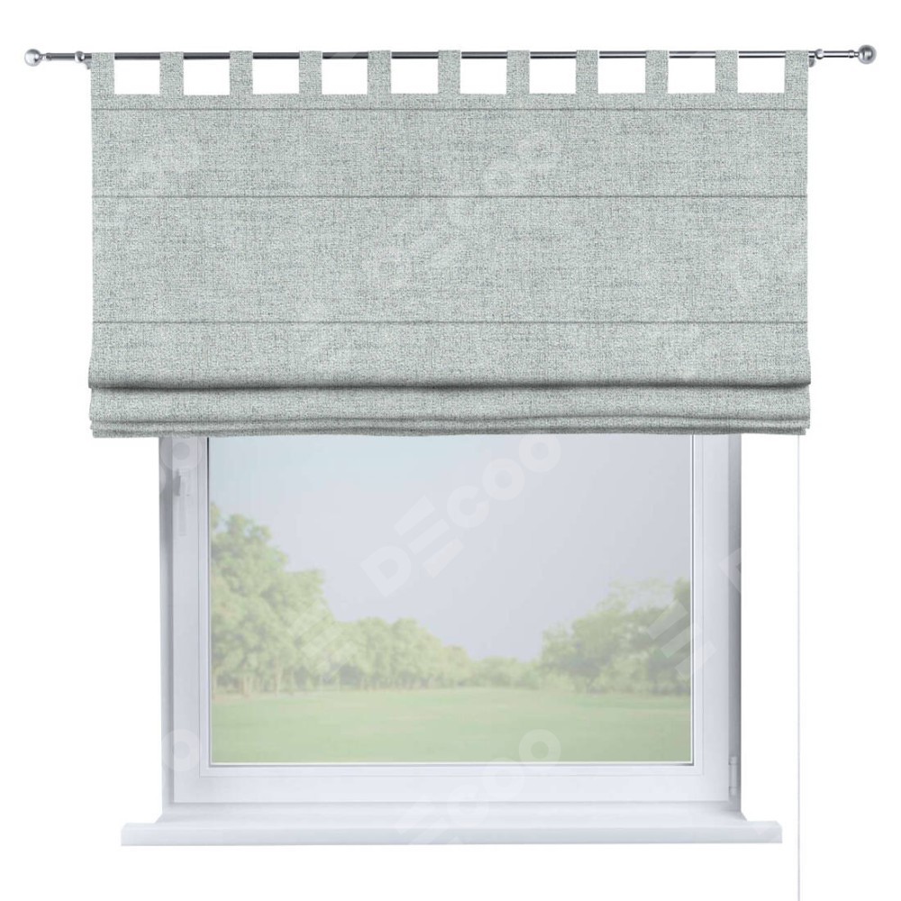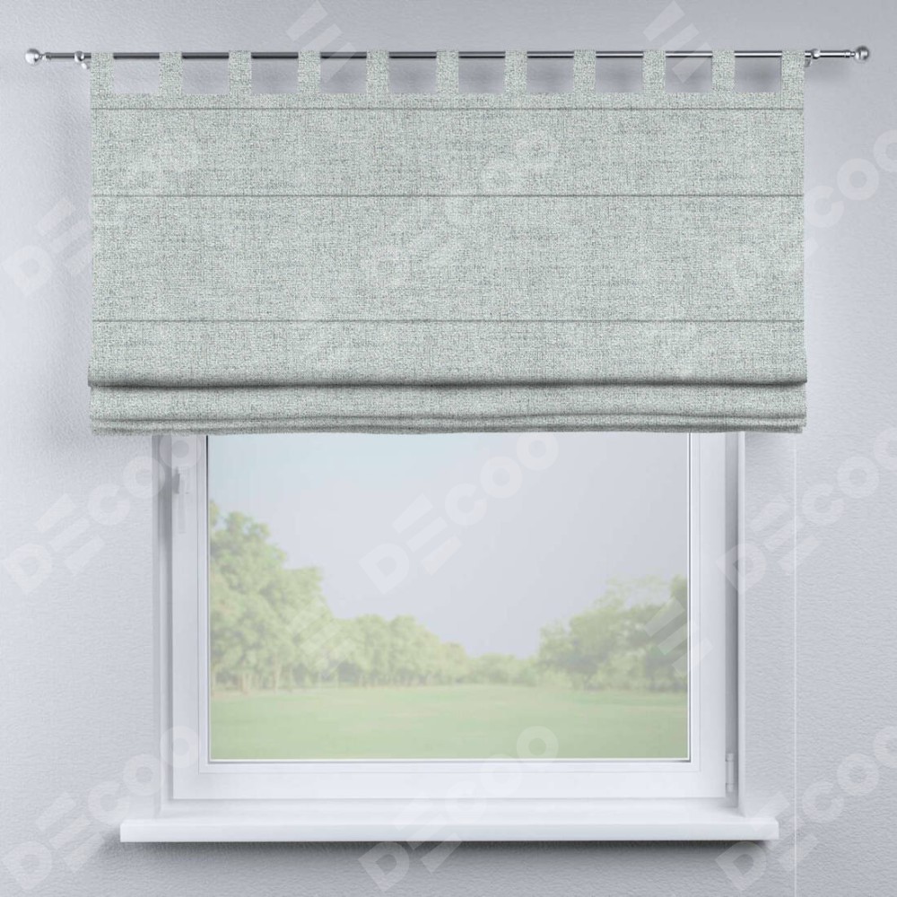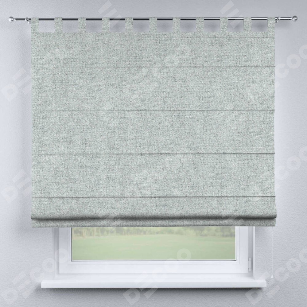 Римская штора производителя «Cortin», используется для проёма, пошита из ткани рогожка димаут серый, артикул ткани 91027. Данная модель пошита на петлях, комплектуется на выбор круглым карнизом и подходит для монтажа на стену. Римская штора на петлях имеет простую систему регулировки высоты, отличительным преимуществом данной модели является простой способ монтажа. Достаточно повесить ее на трубу и штора готова!
