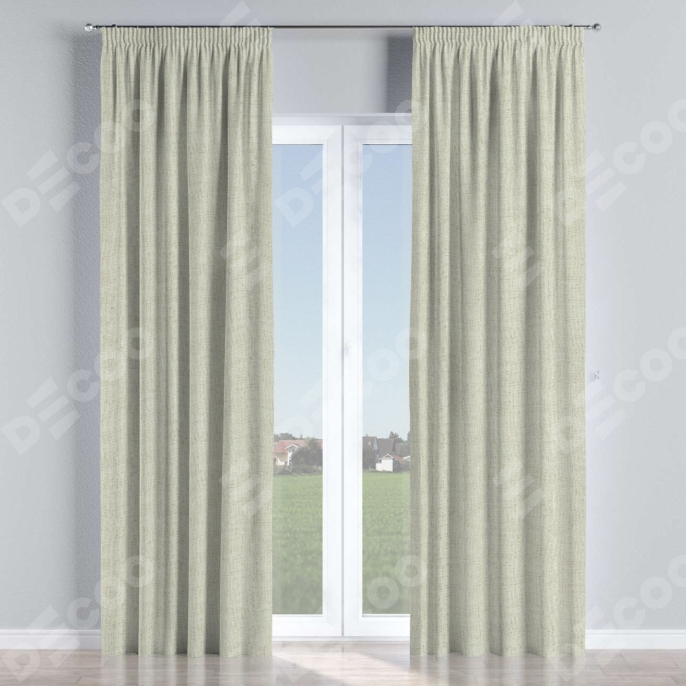 Комплект прямых штор, от производителя «Cortin», пошиты из ткани рогожка димаут серо-бежевый, артикул ткани 91014. С изнаночной стороны в верхней части штор пристрачивается шторная лента с декоративными складками «Карандаш». Для создания элегантных складок прямые шторы шьются по стандарту с коэффициентом 1:2 (на 100 см. ширины проёма 200 см. ширины ткани).