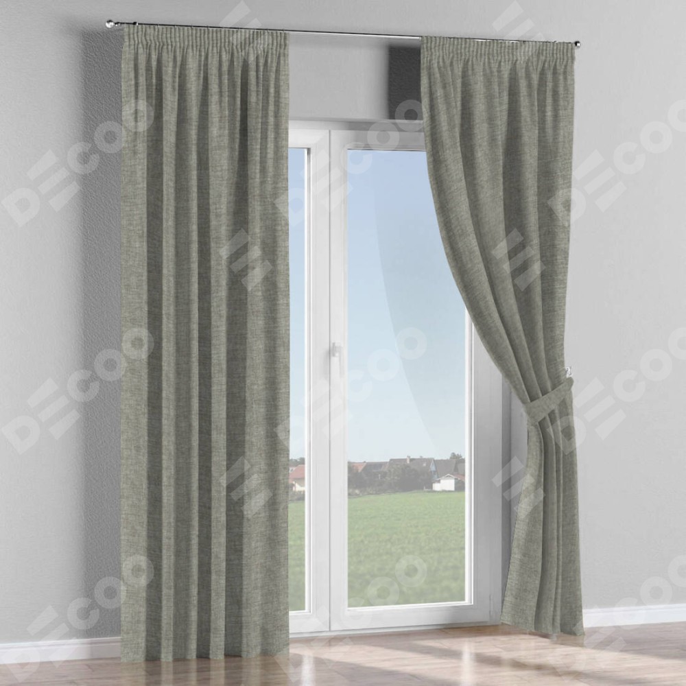 Комплект прямых штор, от производителя «Cortin», пошиты из ткани рогожка димаут серый дуб, артикул ткани 91028. С изнаночной стороны в верхней части штор пристрачивается шторная лента с декоративными складками «Карандаш». Для создания элегантных складок прямые шторы шьются по стандарту с коэффициентом 1:2 (на 100 см. ширины проёма 200 см. ширины ткани).