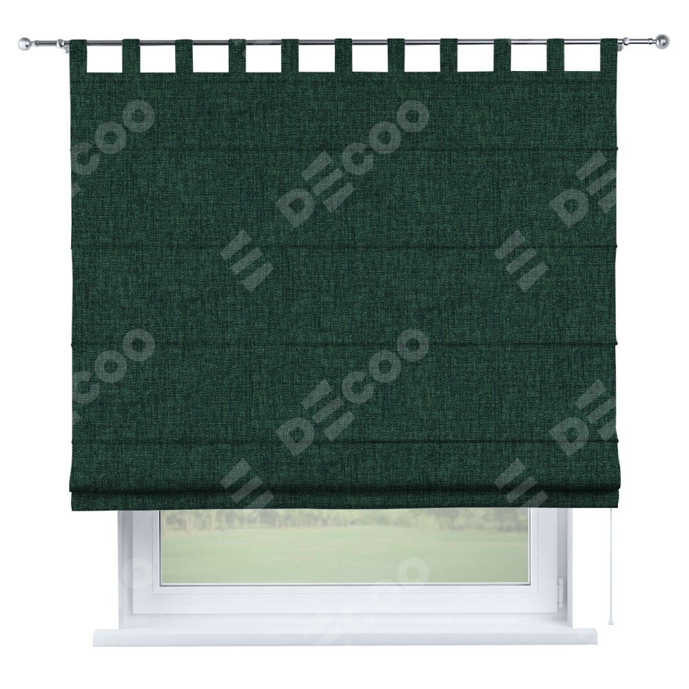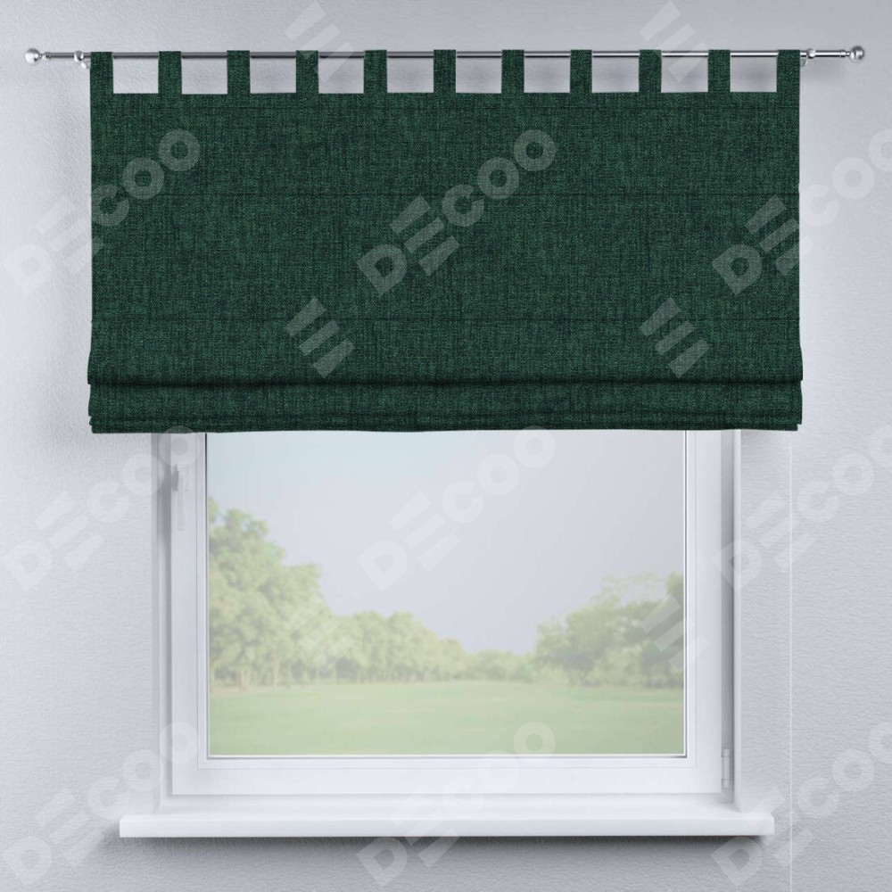 Римская штора производителя «Cortin», используется для проёма, пошита из ткани рогожка димаут тёмно-зелёный, артикул ткани 91022. Данная модель пошита на петлях, комплектуется на выбор круглым карнизом и подходит для монтажа на стену. Римская штора на петлях имеет простую систему регулировки высоты, отличительным преимуществом данной модели является простой способ монтажа. Достаточно повесить ее на трубу и штора готова!