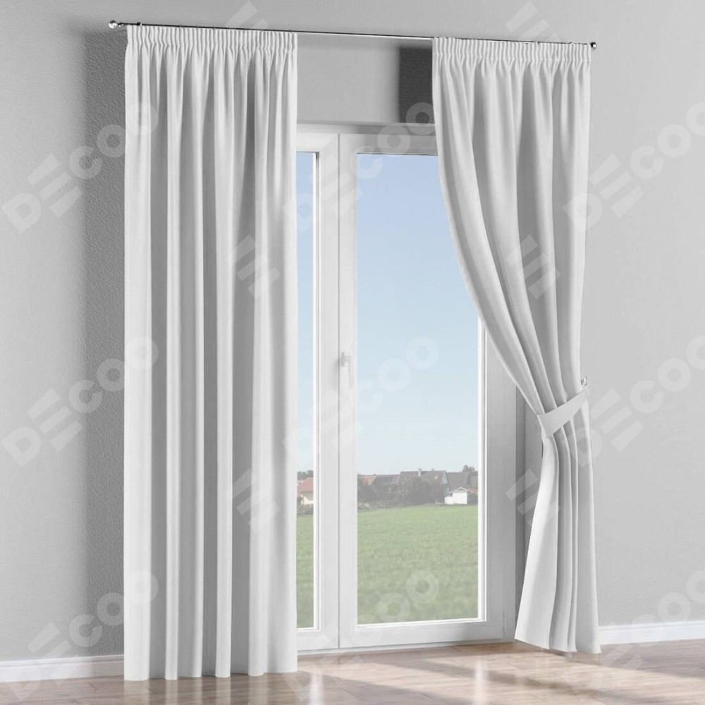 Комплект прямых штор, от производителя «Cortin», пошиты из ткани лён белоснежный, артикул ткани 95632. С изнаночной стороны в верхней части штор пристрачивается шторная лента с декоративными складками «Карандаш». Для создания элегантных складок прямые шторы шьются по стандарту с коэффициентом 1:2 (на 100 см. ширины проёма 200 см. ширины ткани).