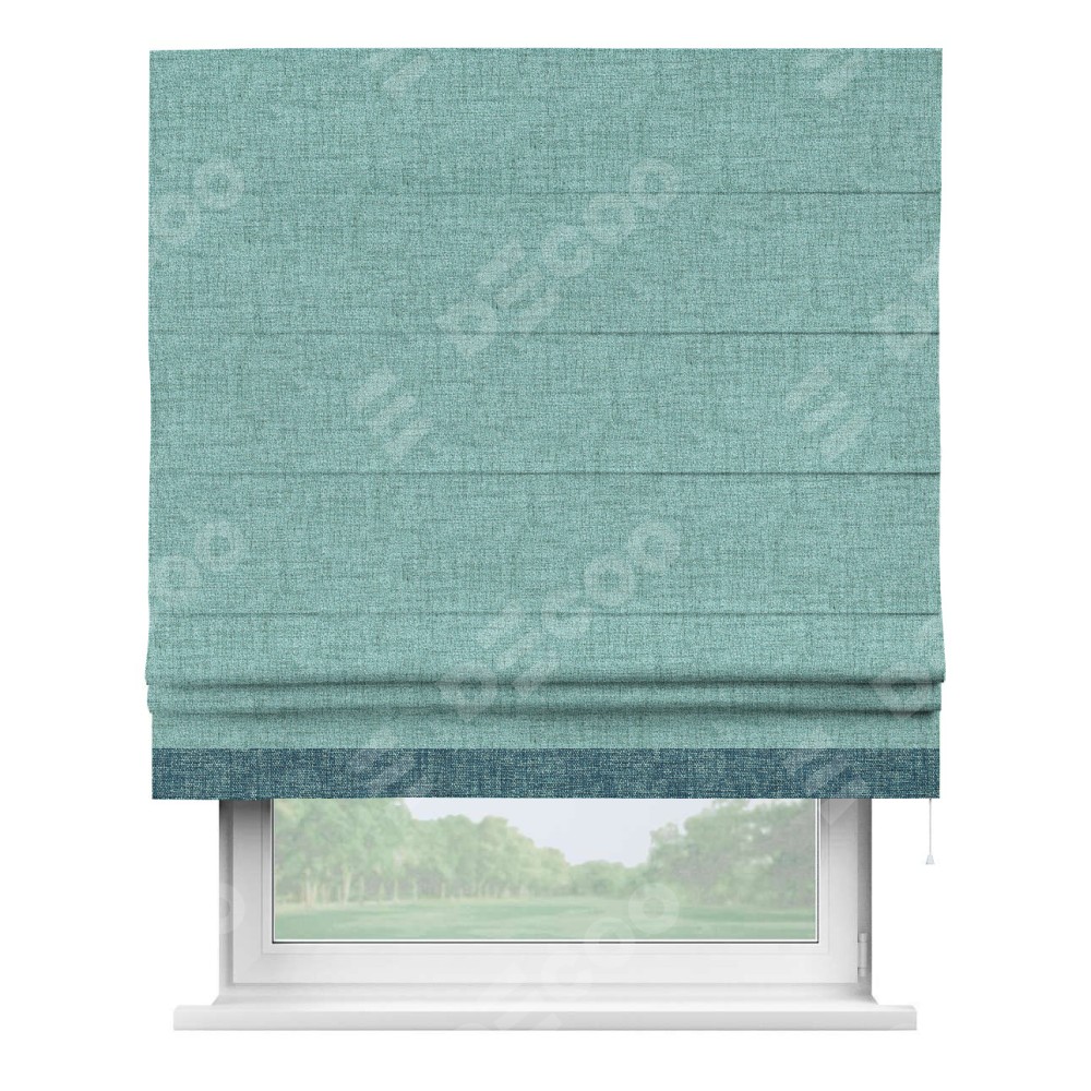 Римская штора «Кортин» для проёма, рогожка димаут аквамариновый крайола, с кантом Джестер