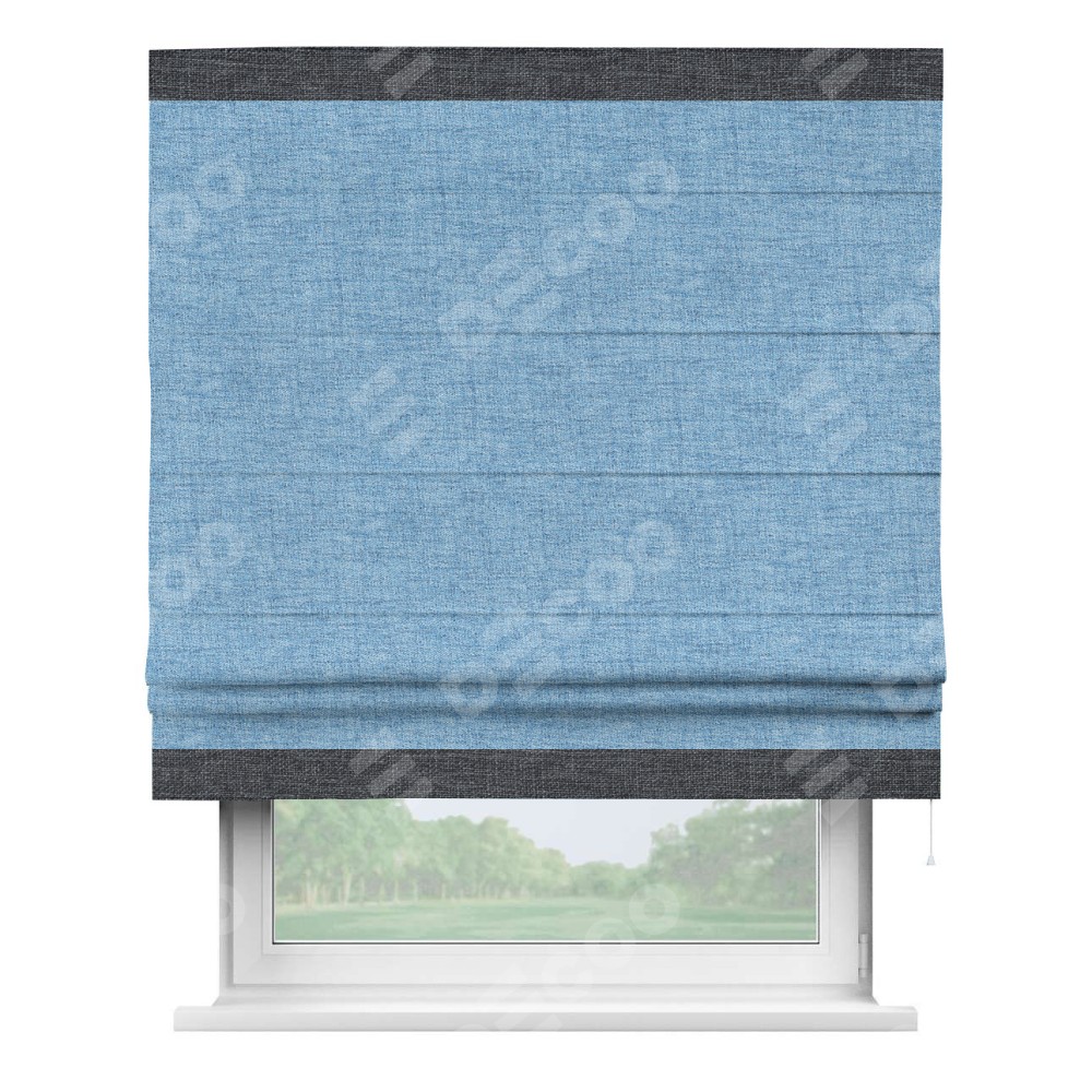 Римская штора «Кортин» для проёма, рогожка димаут голубой, с кантом Горизонт