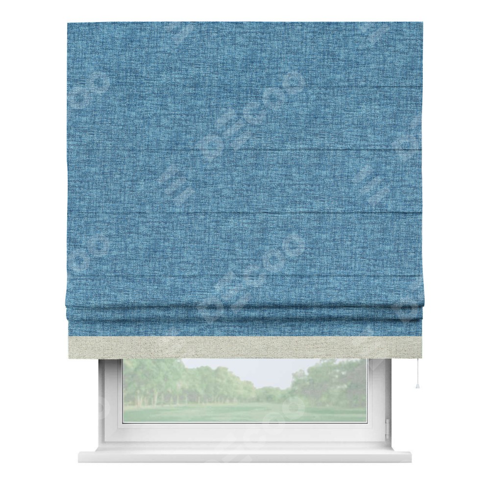 Римская штора «Кортин» для проёма, рогожка димаут джинс, с кантом Джестер