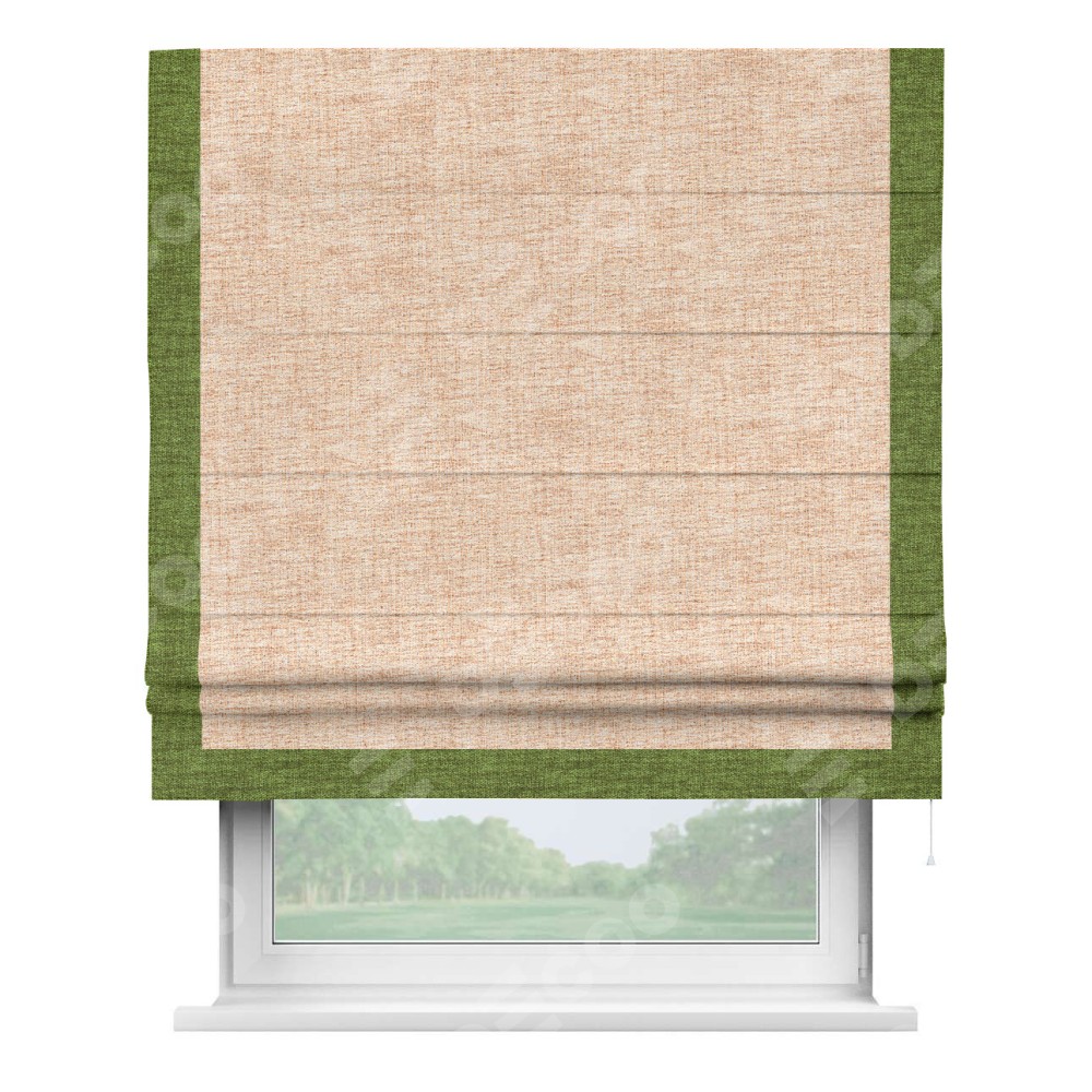 Римская штора «Кортин» для проёма, рогожка димаут персиковый, с кантом Виктория