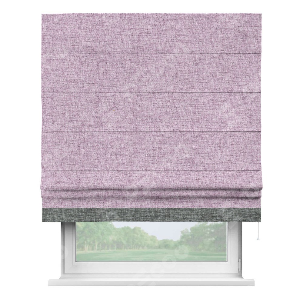 Римская штора «Кортин» для проёма, рогожка димаут розовый, с кантом Джестер
