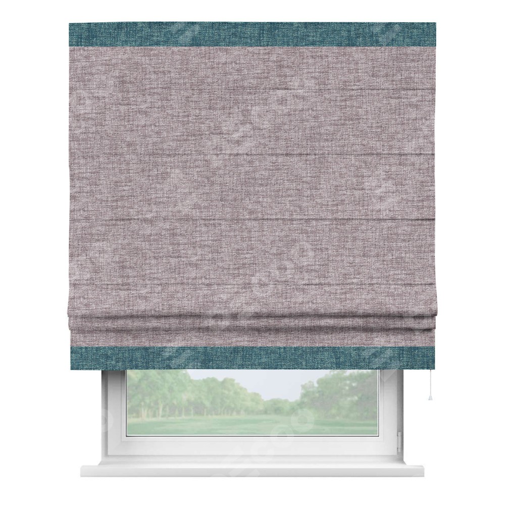 Римская штора пошита из ткани рогожка димаут розовый кварц, артикул: 91030, с отделкой кантом «Горизонт» предлагает уникальное дизайнерское решение, при котором кант располагается только вверху и снизу шторы. Такое решение делает акцент на горизонтальных линиях, визуально расширяя пространство и придавая окну более строгий и организованный вид. Отделка кантом в этих ключевых местах не только украшает штору, но и способствует её долговечности, защищая наиболее уязвимые к износу края.