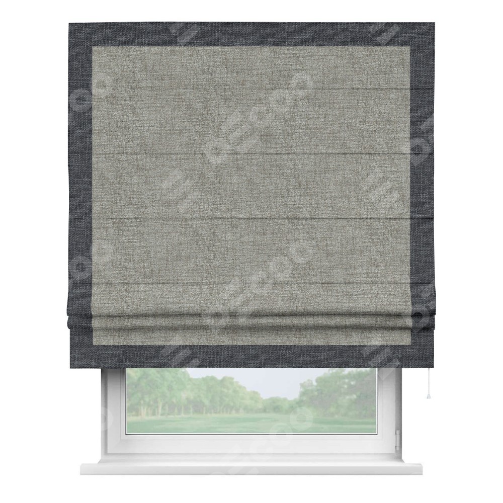 Римская штора «Кортин» для проёма, рогожка димаут серый дуб, с кантом Чесс