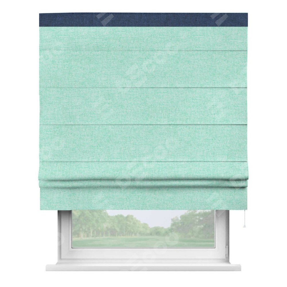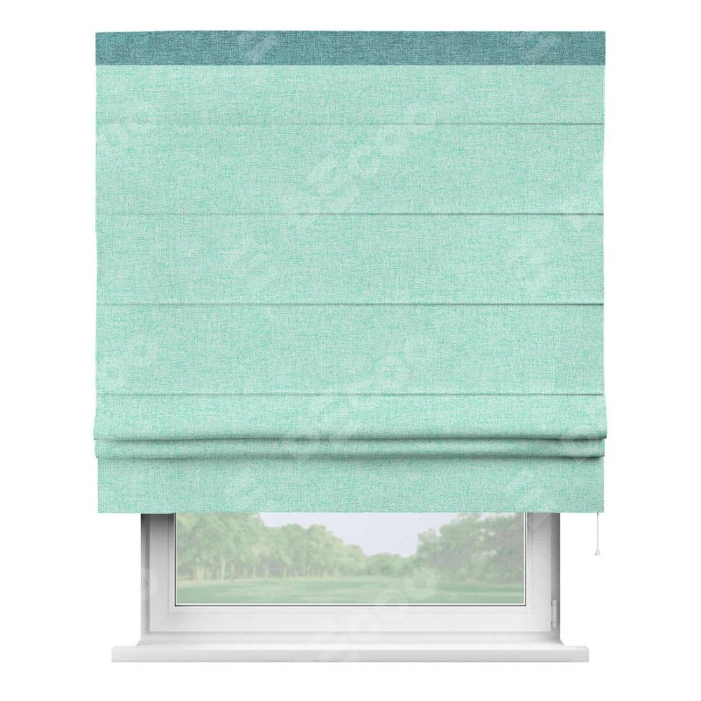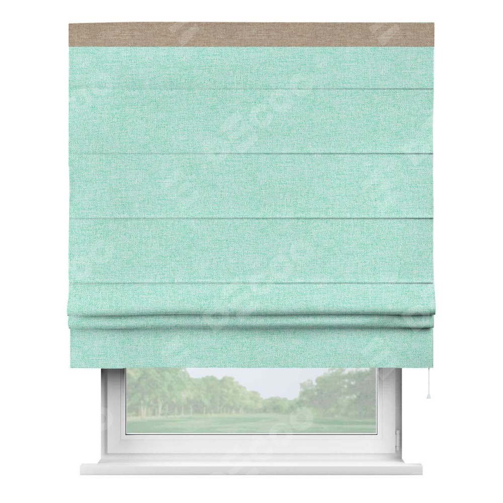 Римская штора «Кортин» для проёма, лён кашемир мятный, с кантом Кинг