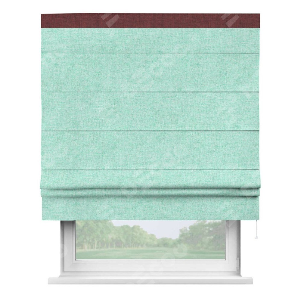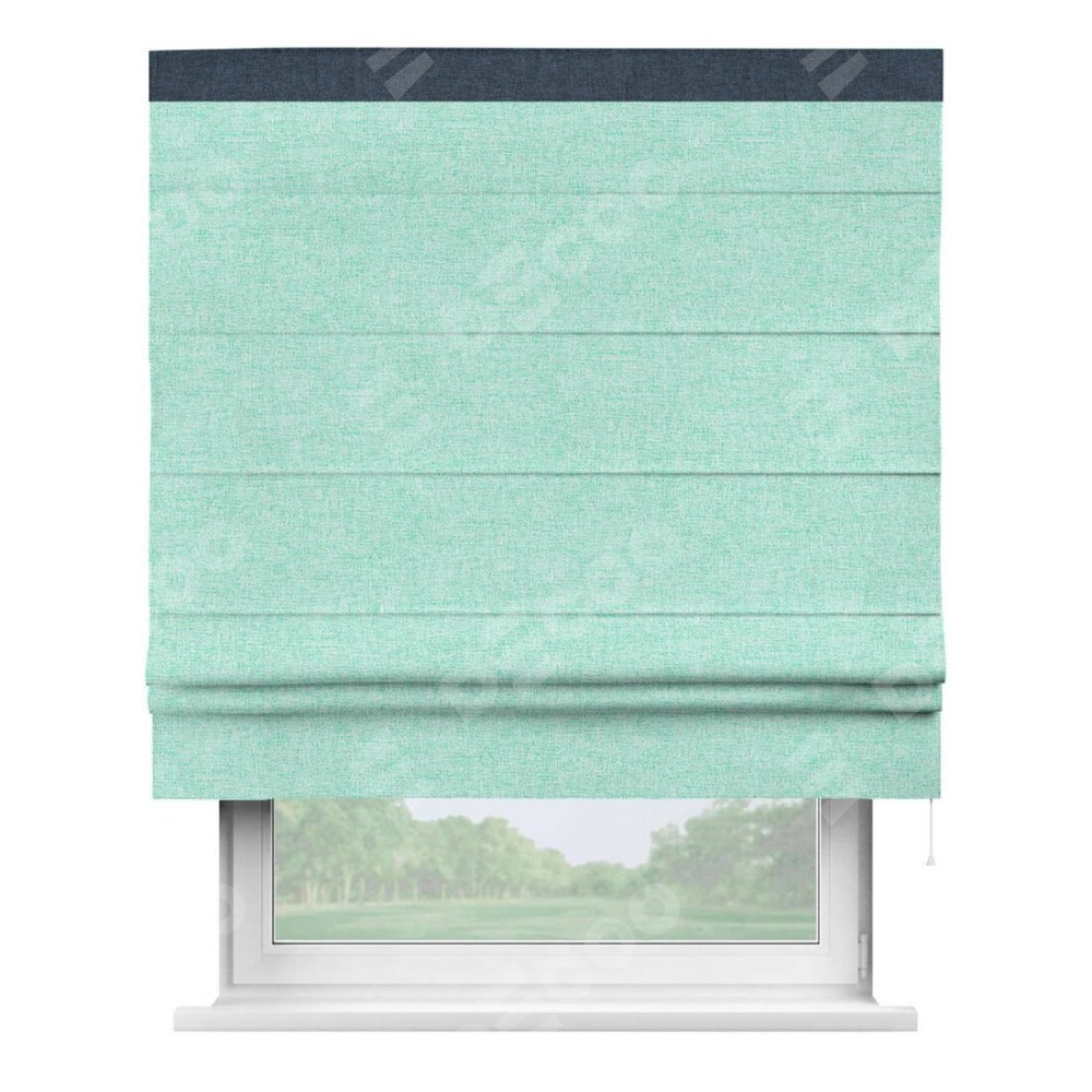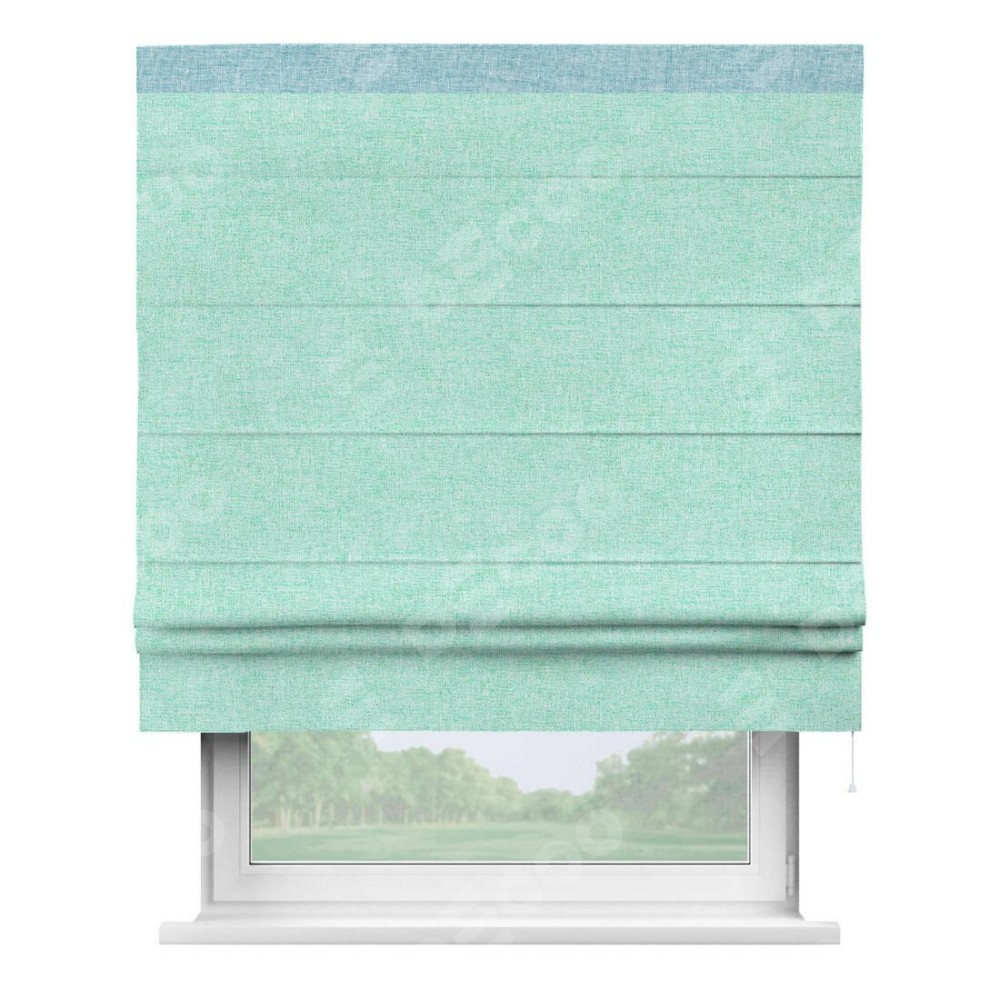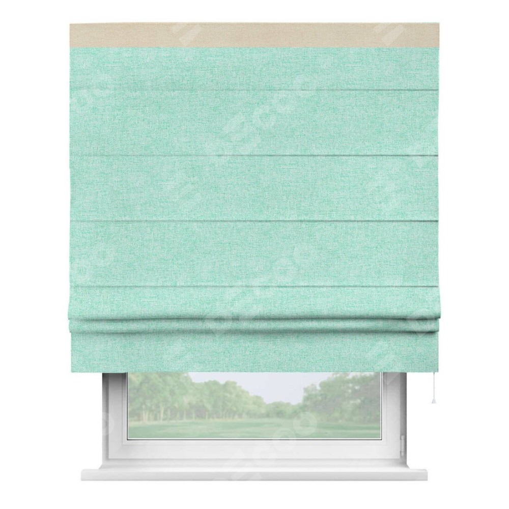Римская штора «Кортин» для проёма, лён кашемир мятный, с кантом Кинг