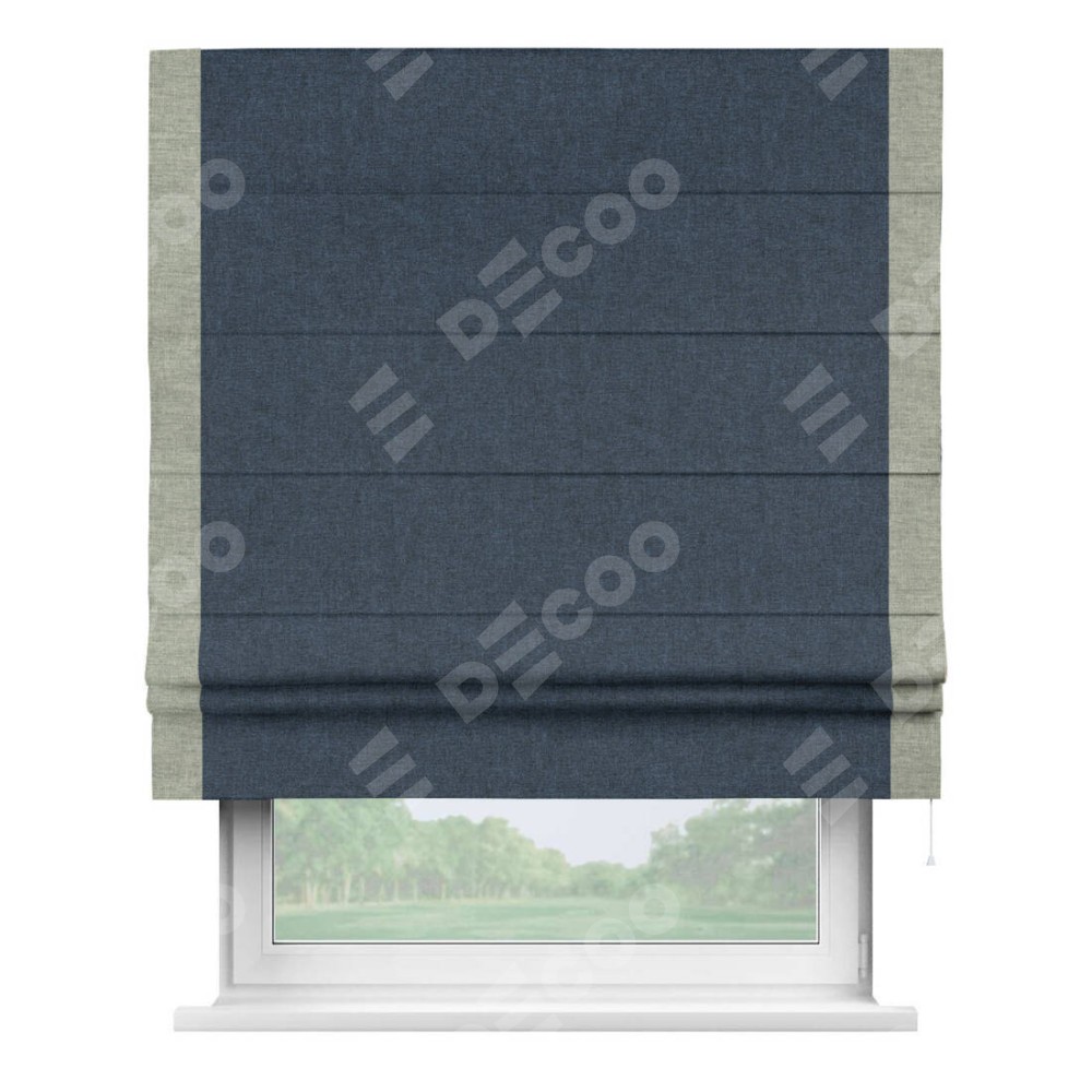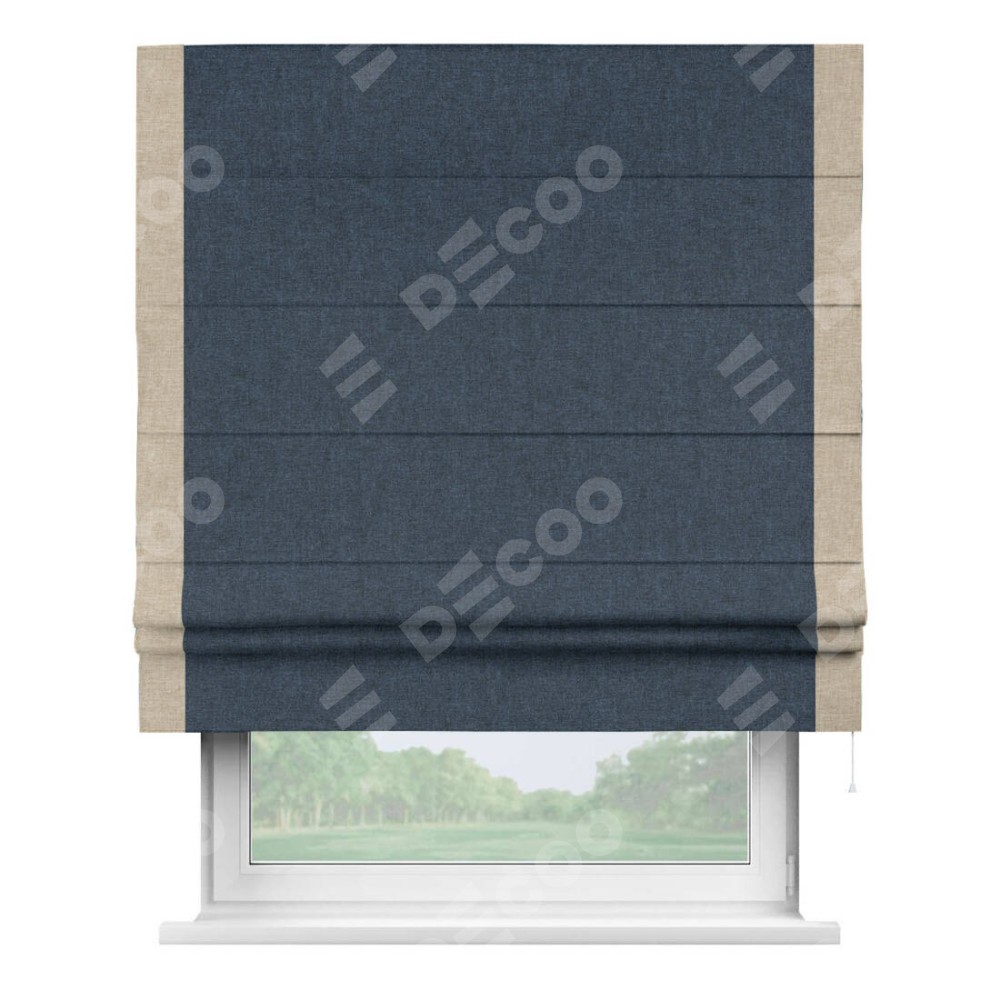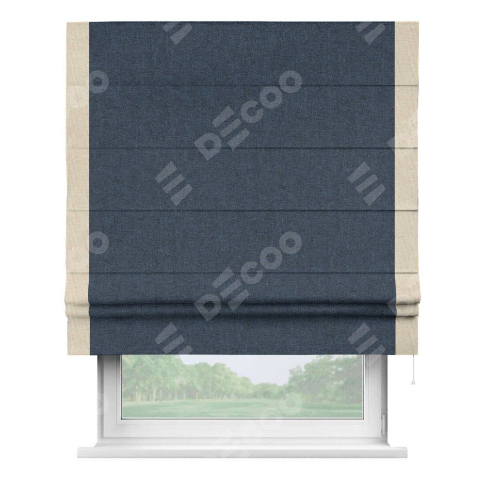 Римская штора «Кортин» для проёма, лён кашемир синий, с кантом Стрим Дуо