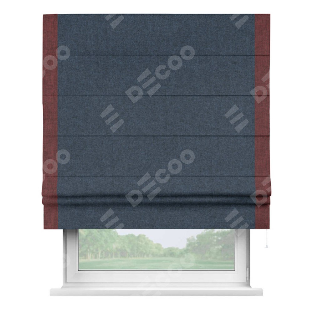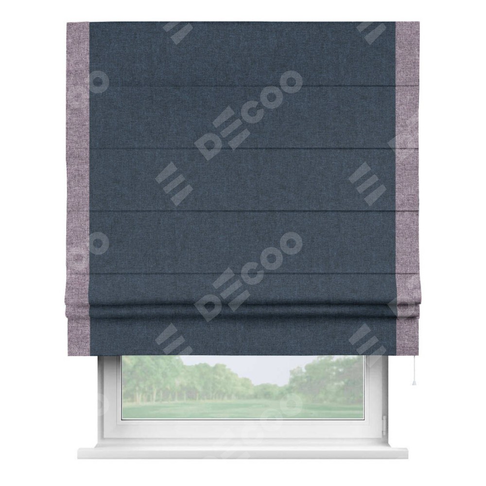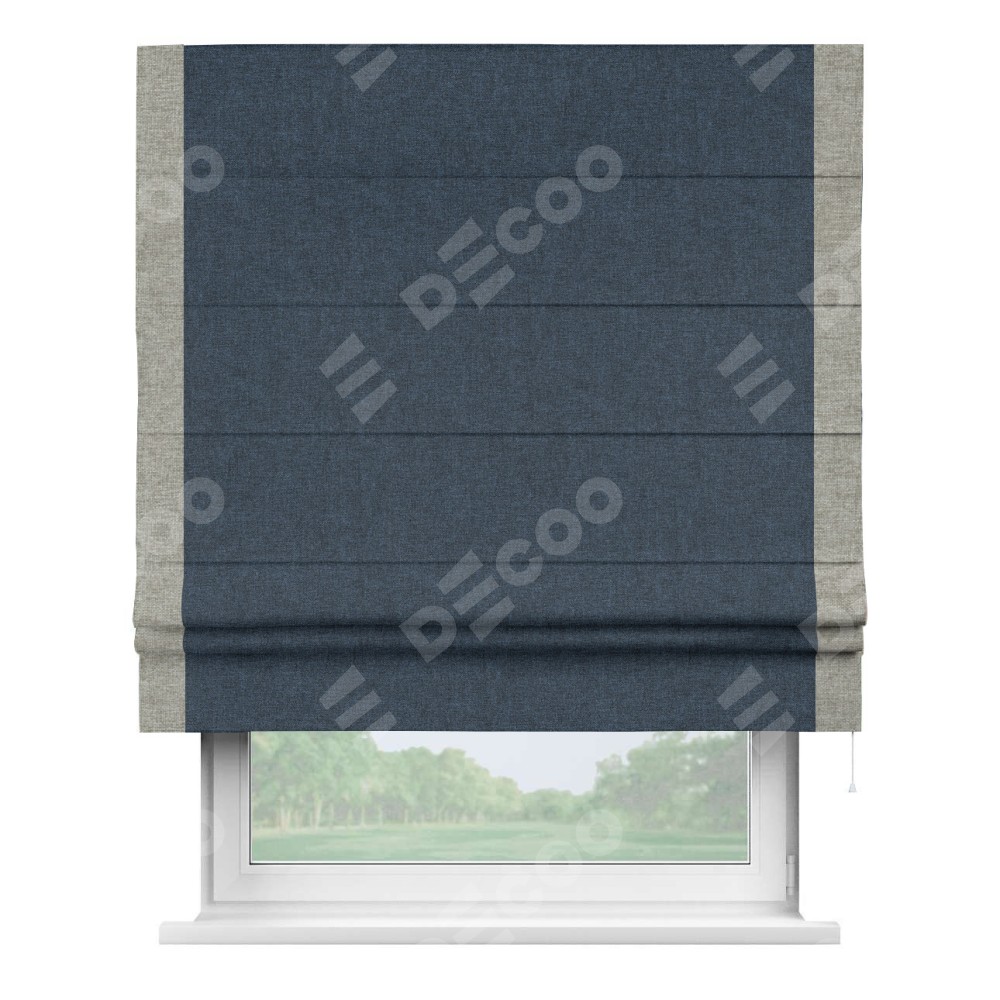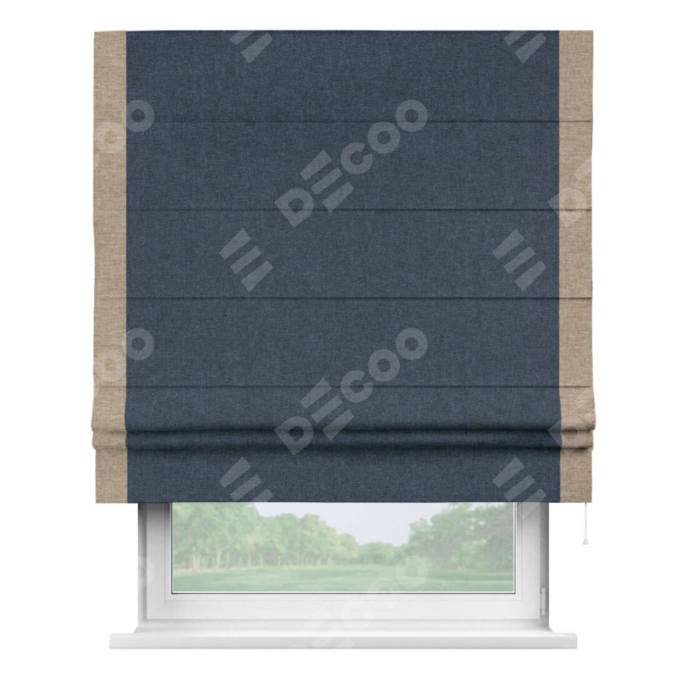 Римская штора «Кортин» для проёма, лён кашемир синий, с кантом Стрим Дуо