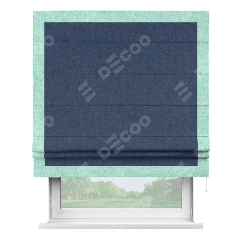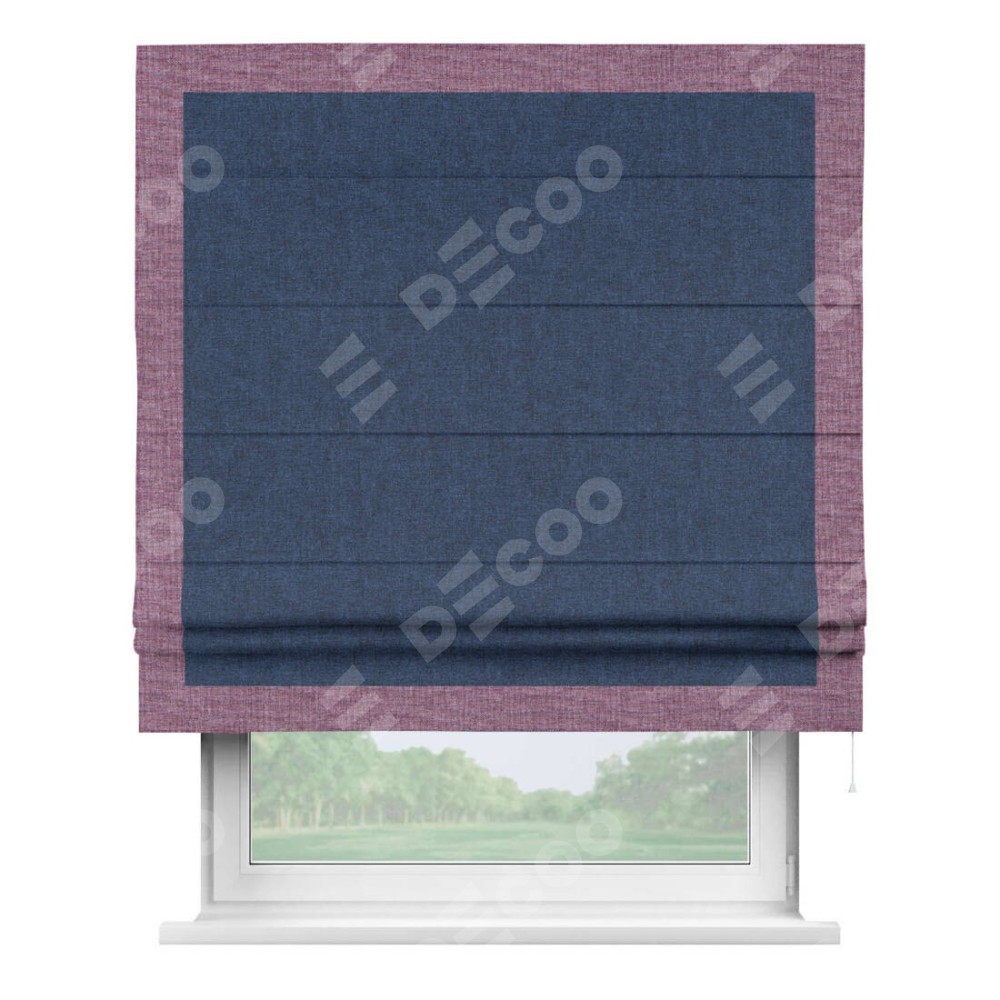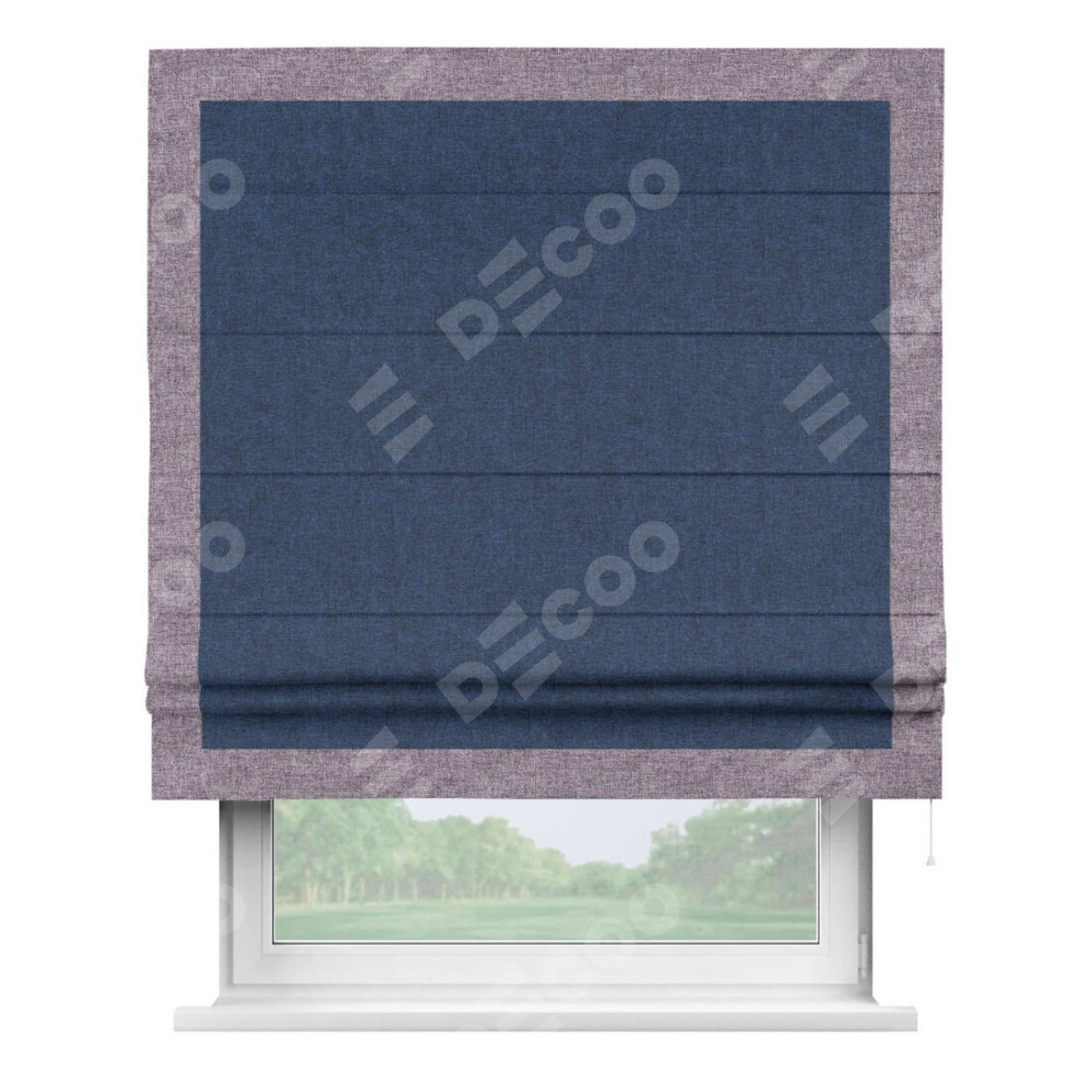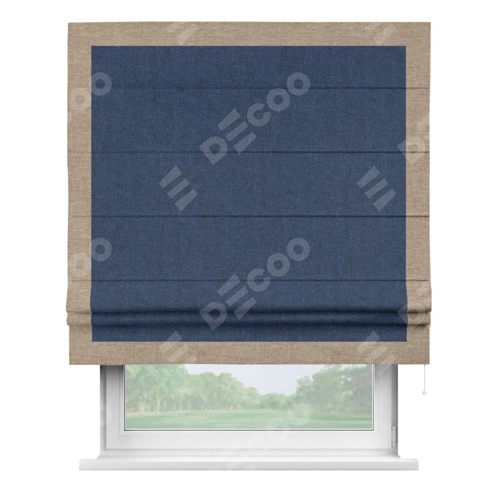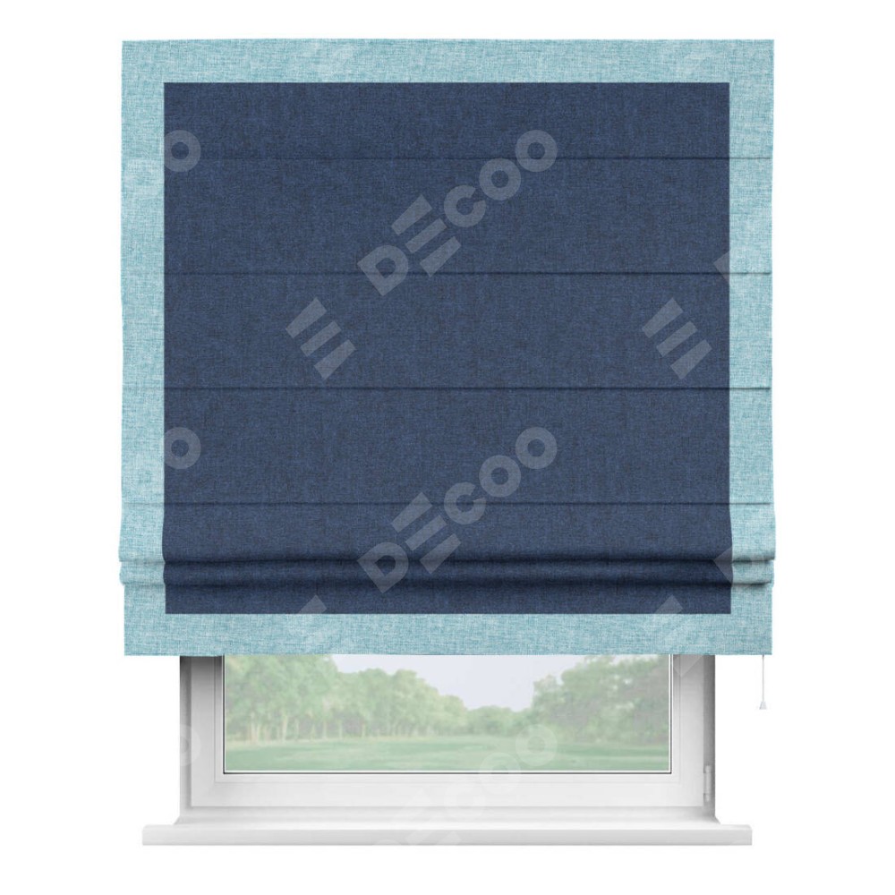 Римская штора «Кортин» для проёма, лён кашемир тёмно-синий, с кантом Чесс
