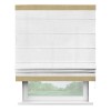 Римская штора пошита из ткани лён белоснежный, артикул: 95632, с отделкой кантом «Горизонт» предлагает уникальное дизайнерское решение, при котором кант располагается только вверху и снизу шторы. Такое решение делает акцент на горизонтальных линиях, визуально расширяя пространство и придавая окну более строгий и организованный вид. Отделка кантом в этих ключевых местах не только украшает штору, но и способствует её долговечности, защищая наиболее уязвимые к износу края.