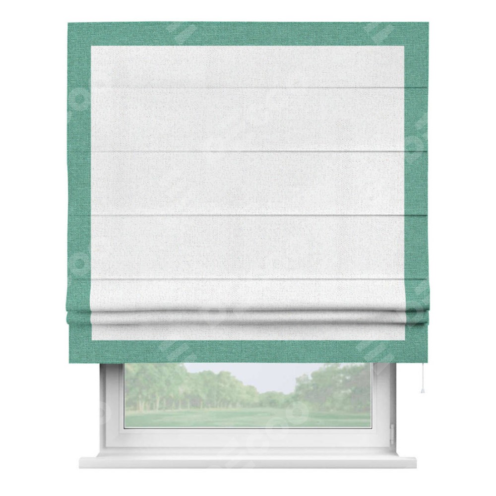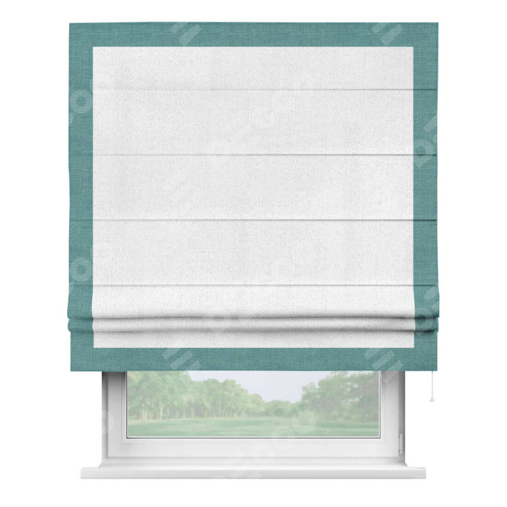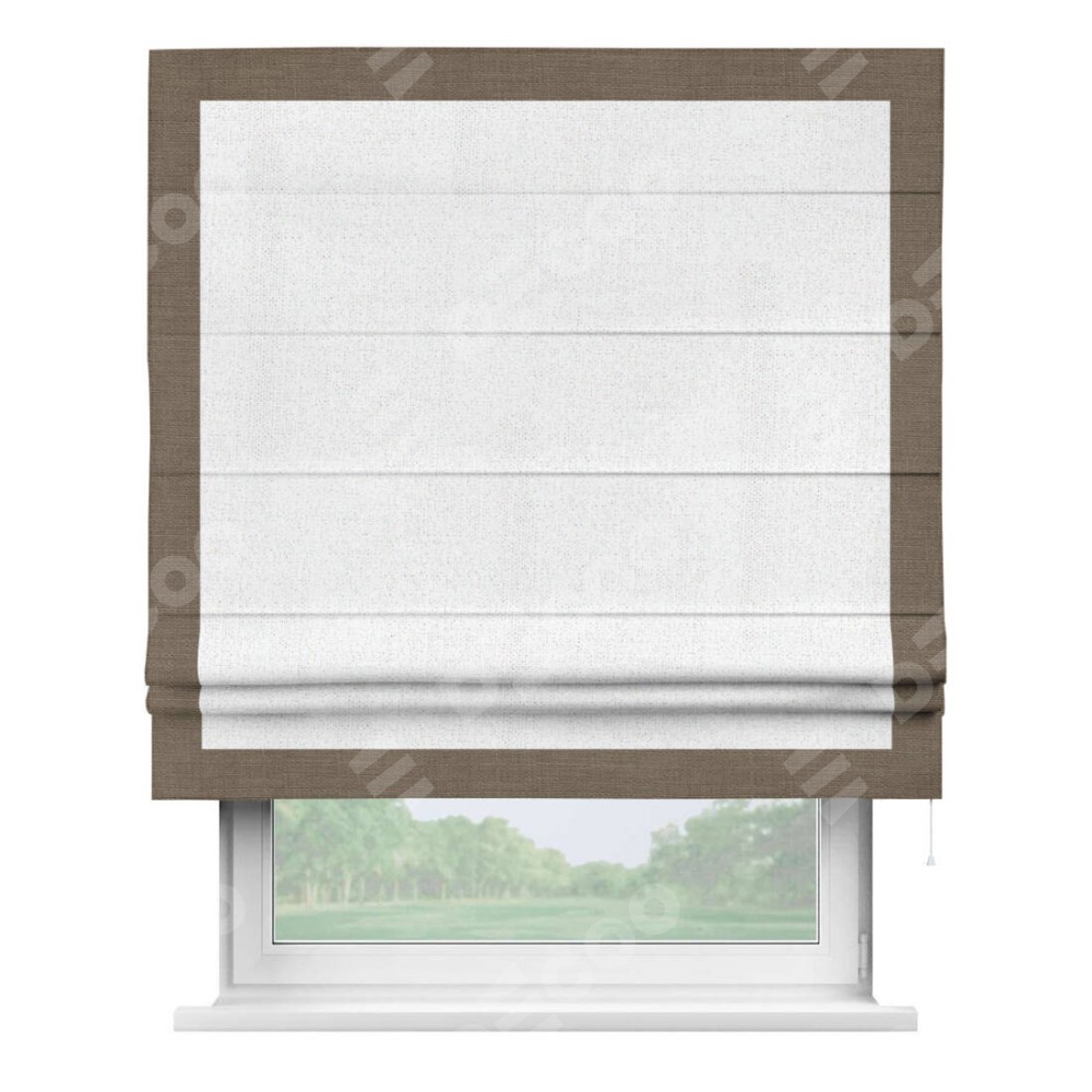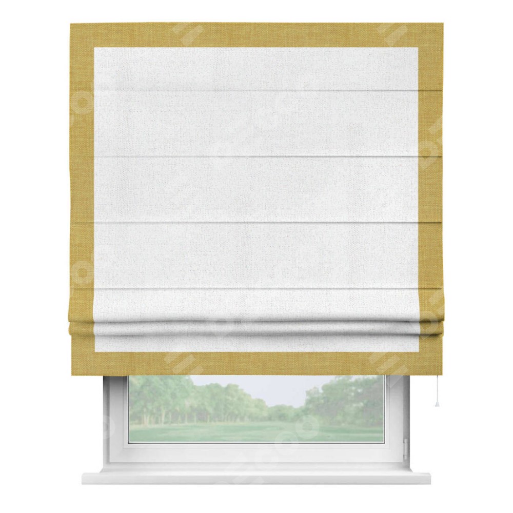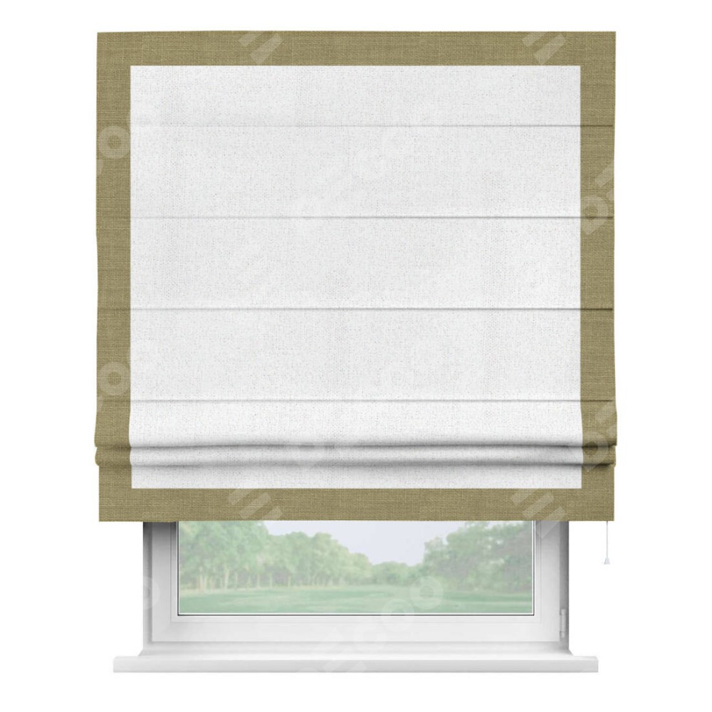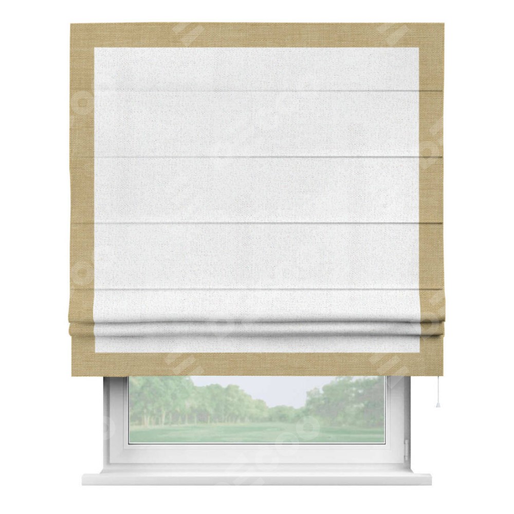 Римская штора «Кортин» для проема, лён белоснежный, с кантом Чесс
