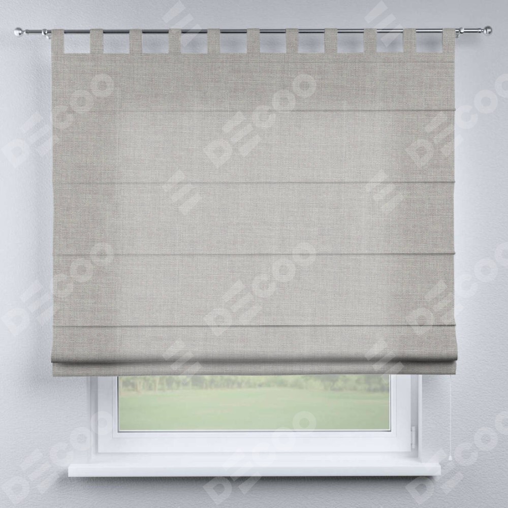 Римская штора производителя «Cortin», используется для проёма, пошита из ткани лён серый, артикул ткани 91410. Данная модель пошита на петлях, комплектуется на выбор круглым карнизом и подходит для монтажа на стену. Римская штора на петлях имеет простую систему регулировки высоты, отличительным преимуществом данной модели является простой способ монтажа. Достаточно повесить ее на трубу и штора готова!