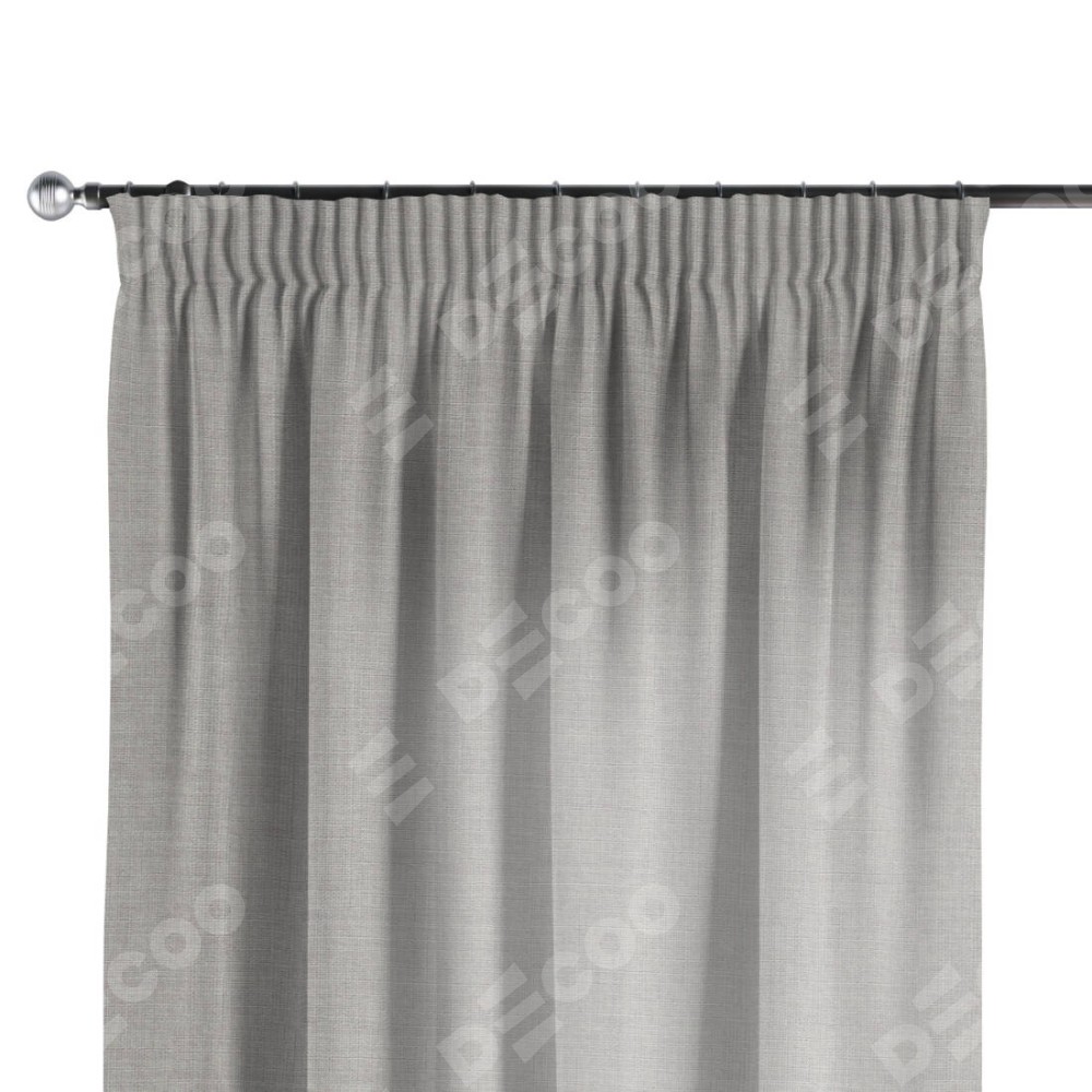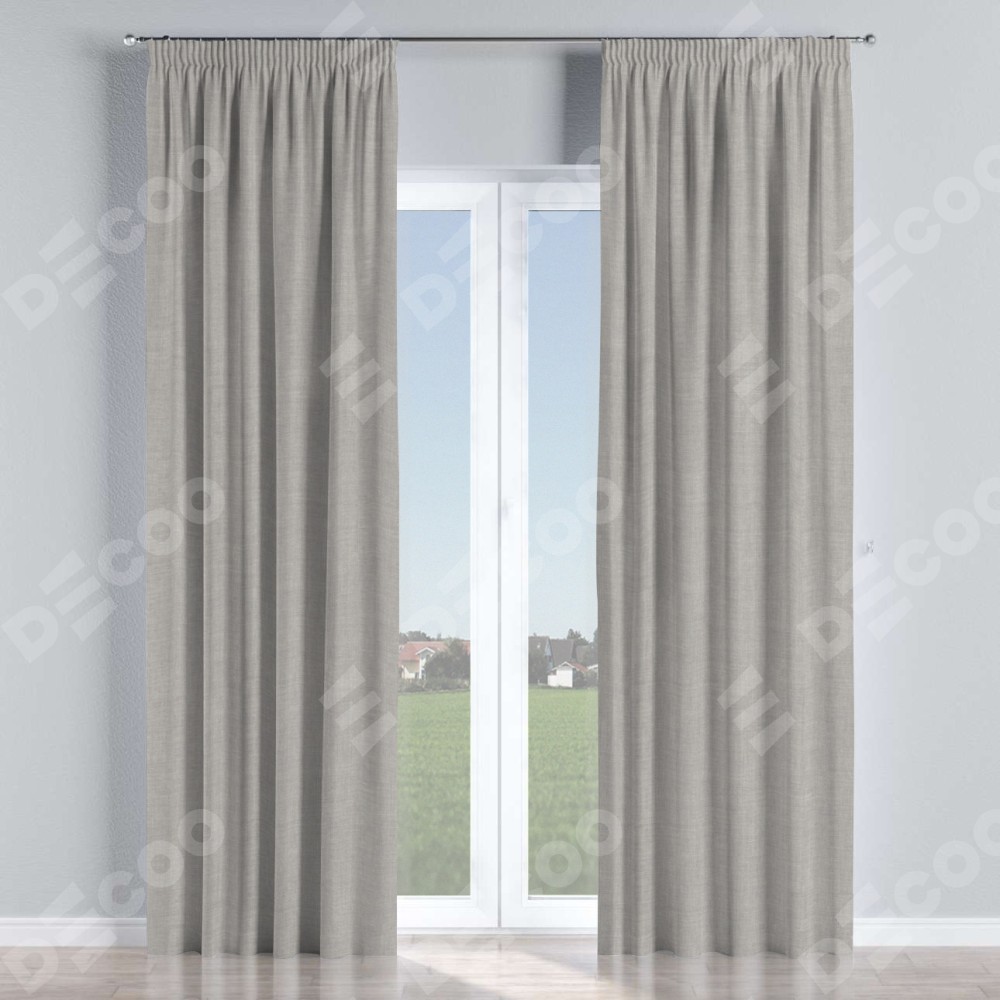 Комплект прямых штор, от производителя «Cortin», пошиты из ткани лён серый, артикул ткани 91410. С изнаночной стороны в верхней части штор пристрачивается шторная лента с декоративными складками «Карандаш». Для создания элегантных складок прямые шторы шьются по стандарту с коэффициентом 1:2 (на 100 см. ширины проёма 200 см. ширины ткани).