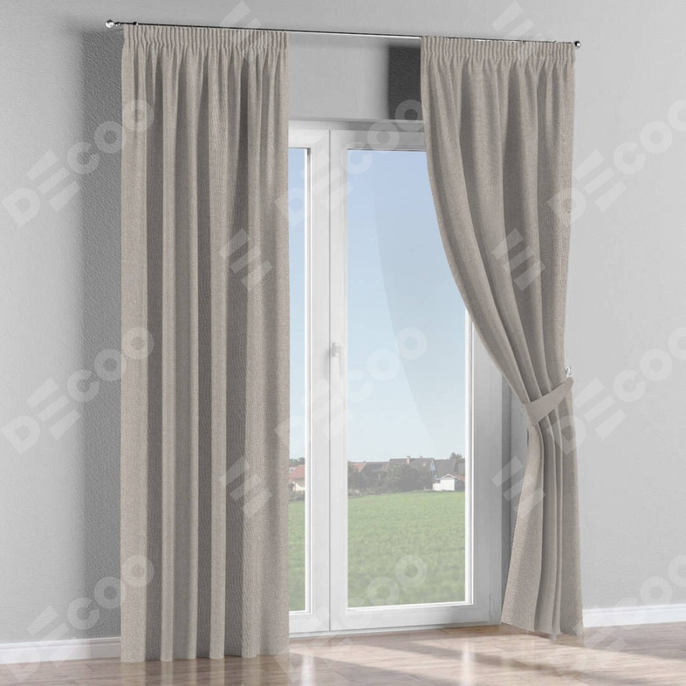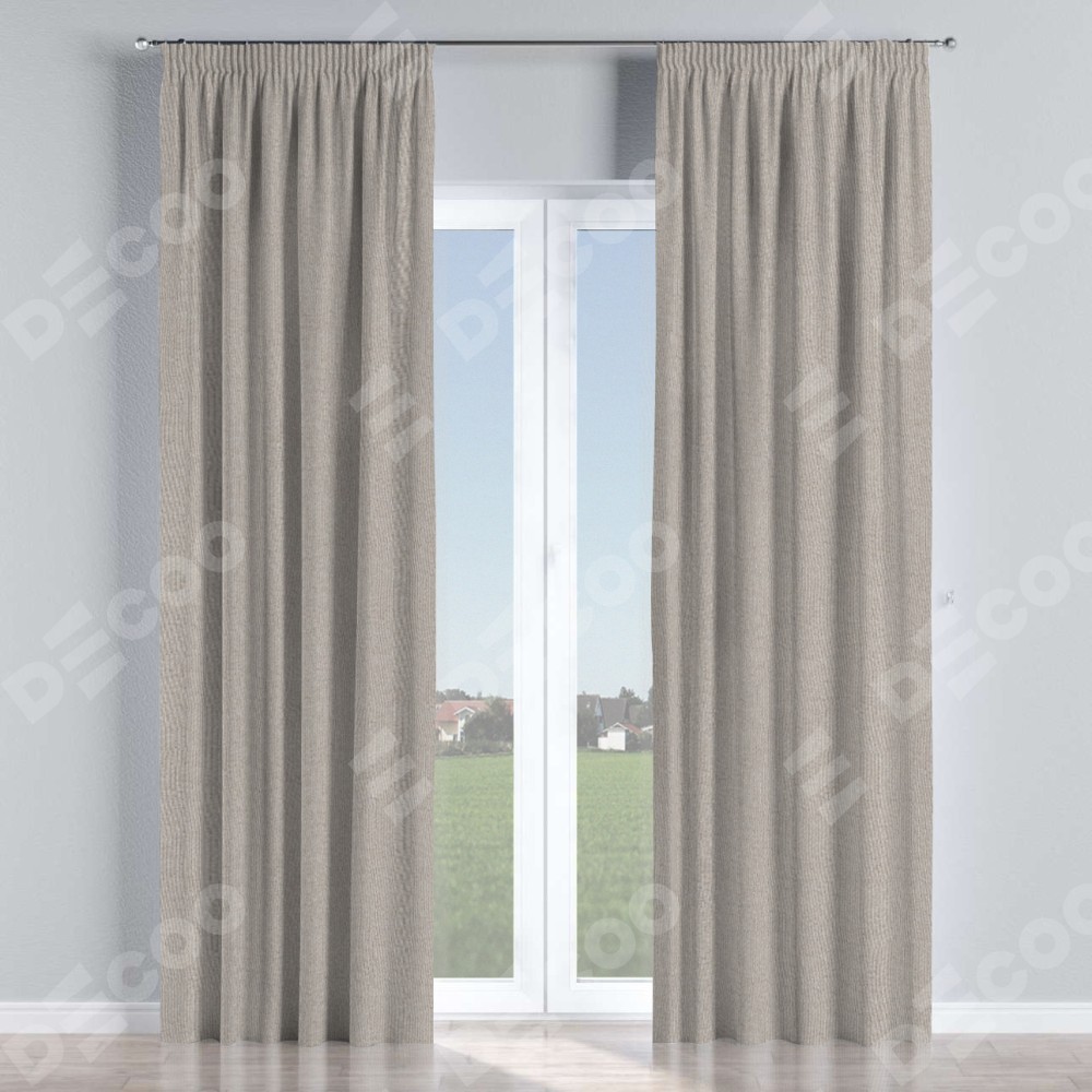 Комплект прямых штор, от производителя «Cortin», пошиты из ткани лён димаут серо-бежевый, артикул ткани 17. С изнаночной стороны в верхней части штор пристрачивается шторная лента с декоративными складками «Карандаш». Для создания элегантных складок рекомендуемый коэффициент 1:2 (на 100 см. ширины проёма 200 см. ширины ткани). Важно! Ширина штор указана без учёта коэффициента сборки!