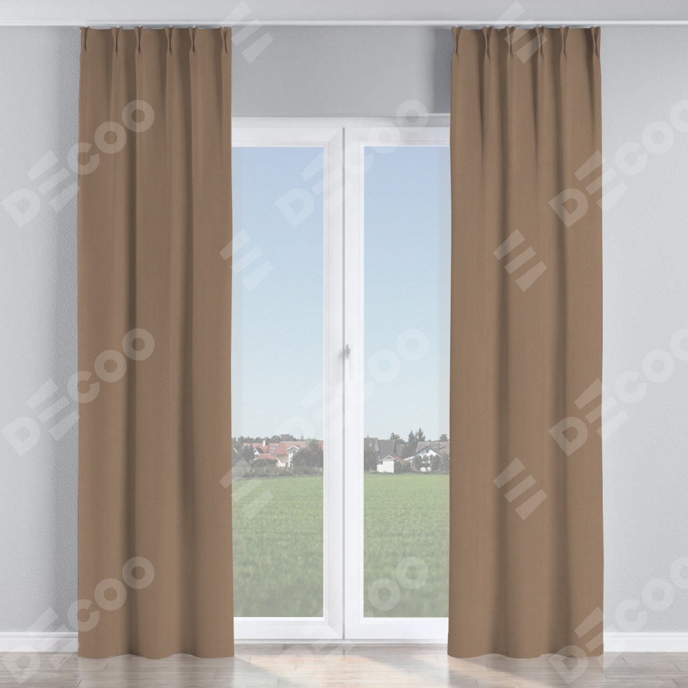 Комплект прямых штор, от производителя «Cortin», пошиты из ткани однотонный блэкаут кофейно-бежевый, артикул ткани 91566−2. С изнаночной стороны в верхней части штор пристрачивается шторная лента с декоративными складками «Кустик». Для создания элегантных складок рекомендуемый коэффициент 1:2 (на 100 см. ширины проёма 200 см. ширины ткани). Важно! Ширина штор указана без учёта коэффициента сборки!