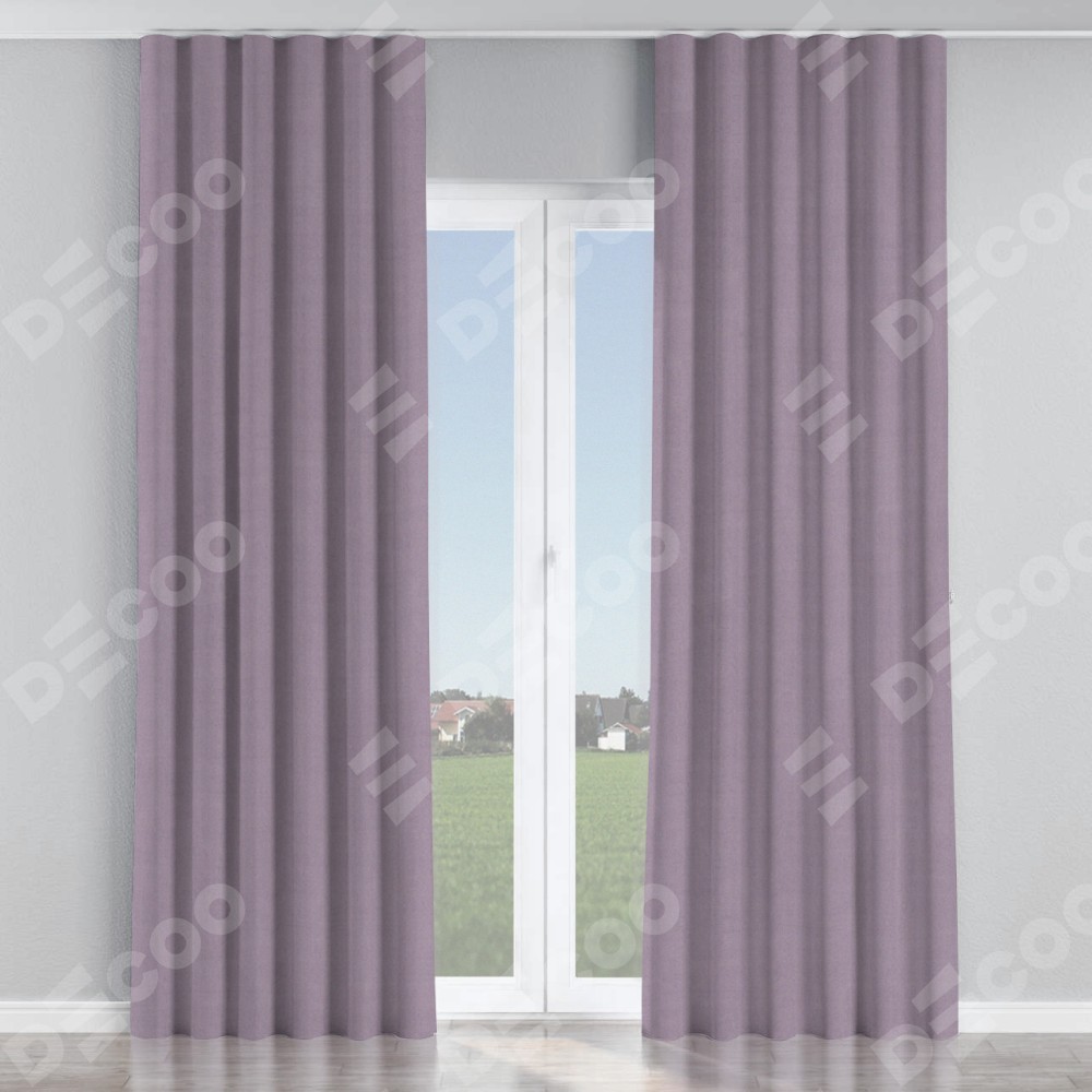 Комплект прямых штор, от производителя «Cortin», пошиты из ткани однотонный блэкаут лиловый, артикул ткани 91577. С изнаночной стороны в верхней части штор пристрачивается шторная лента с декоративными складками «Волна». Для создания элегантных складок рекомендуемый коэффициент 1:2 (на 100 см. ширины проёма 200 см. ширины ткани). Важно! Ширина штор указана без учёта коэффициента сборки!
