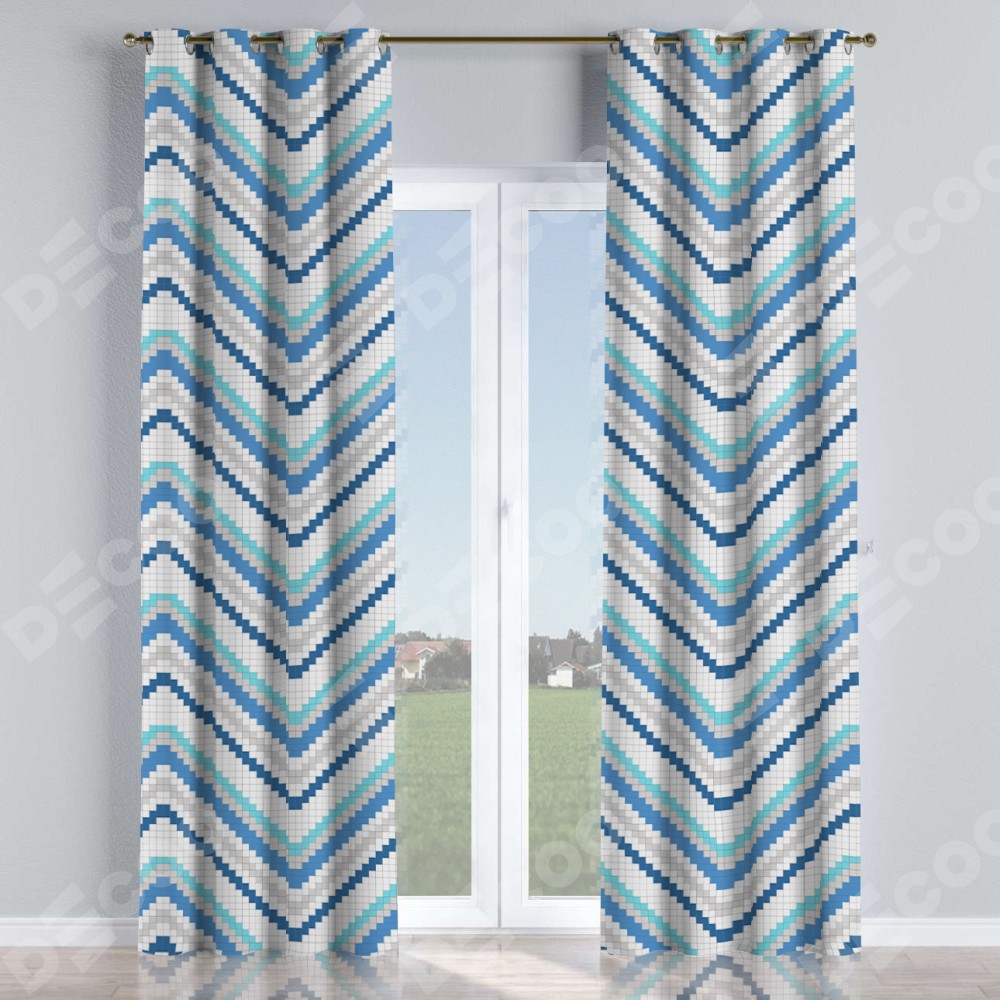 Комплект прямых штор, от производителя «Cortin», пошиты из ткани геометрическая волна, артикул ткани. Данная модель пошита на люверсах, комплектуется на выбор круглым карнизом и подходит для монтажа на стену или потолок. Для создания элегантных складок рекомендуемый коэффициент 1:2 (на 100 см. ширины проёма 200 см. ширины ткани). Важно! Ширина штор указана без учёта коэффициента сборки!