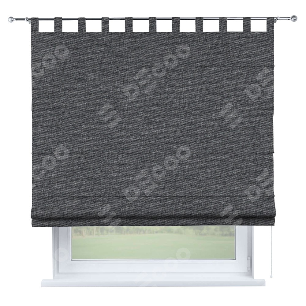 Римская штора производителя «Cortin», используется для проёма, пошита из ткани лён димаут графит, артикул ткани 140644. Данная модель пошита на петлях, комплектуется на выбор круглым карнизом и подходит для монтажа на стену. Римская штора на петлях имеет простую систему регулировки высоты, отличительным преимуществом данной модели является простой способ монтажа. Достаточно повесить ее на трубу и штора готова!