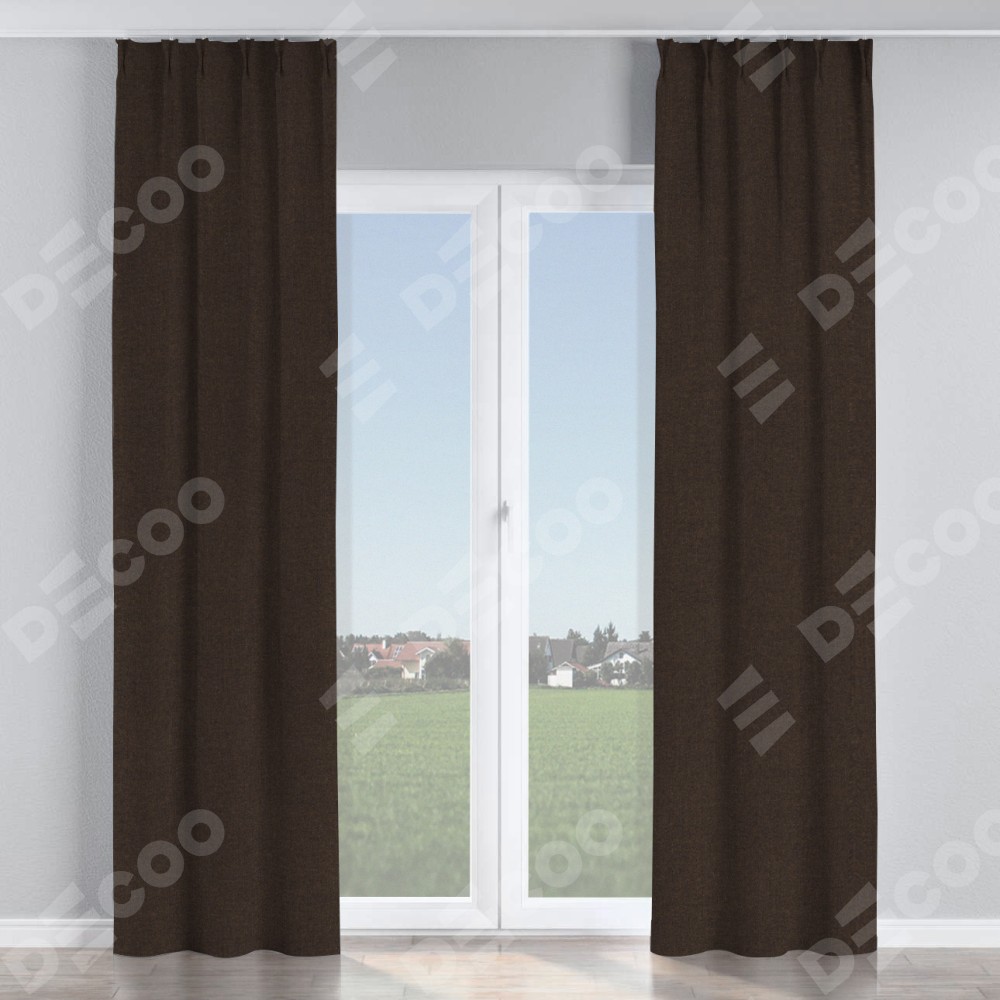Комплект прямых штор, от производителя «Cortin», пошиты из ткани лён тёмно-коричневый, артикул ткани 104497. С изнаночной стороны в верхней части штор пристрачивается шторная лента с декоративными складками «Кустик». Для создания элегантных складок рекомендуемый коэффициент 1:2 (на 100 см. ширины проёма 200 см. ширины ткани). Важно! Ширина штор указана без учёта коэффициента сборки!