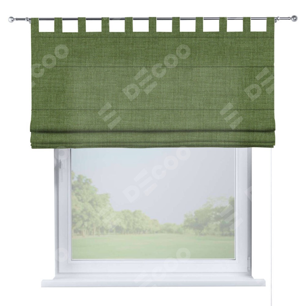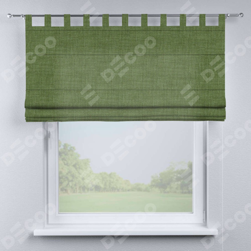 Римская штора производителя «Cortin», используется для проёма, пошита из ткани лён зелёный, артикул ткани 131547. Данная модель пошита на петлях, комплектуется на выбор круглым карнизом и подходит для монтажа на стену. Римская штора на петлях имеет простую систему регулировки высоты, отличительным преимуществом данной модели является простой способ монтажа. Достаточно повесить ее на трубу и штора готова!