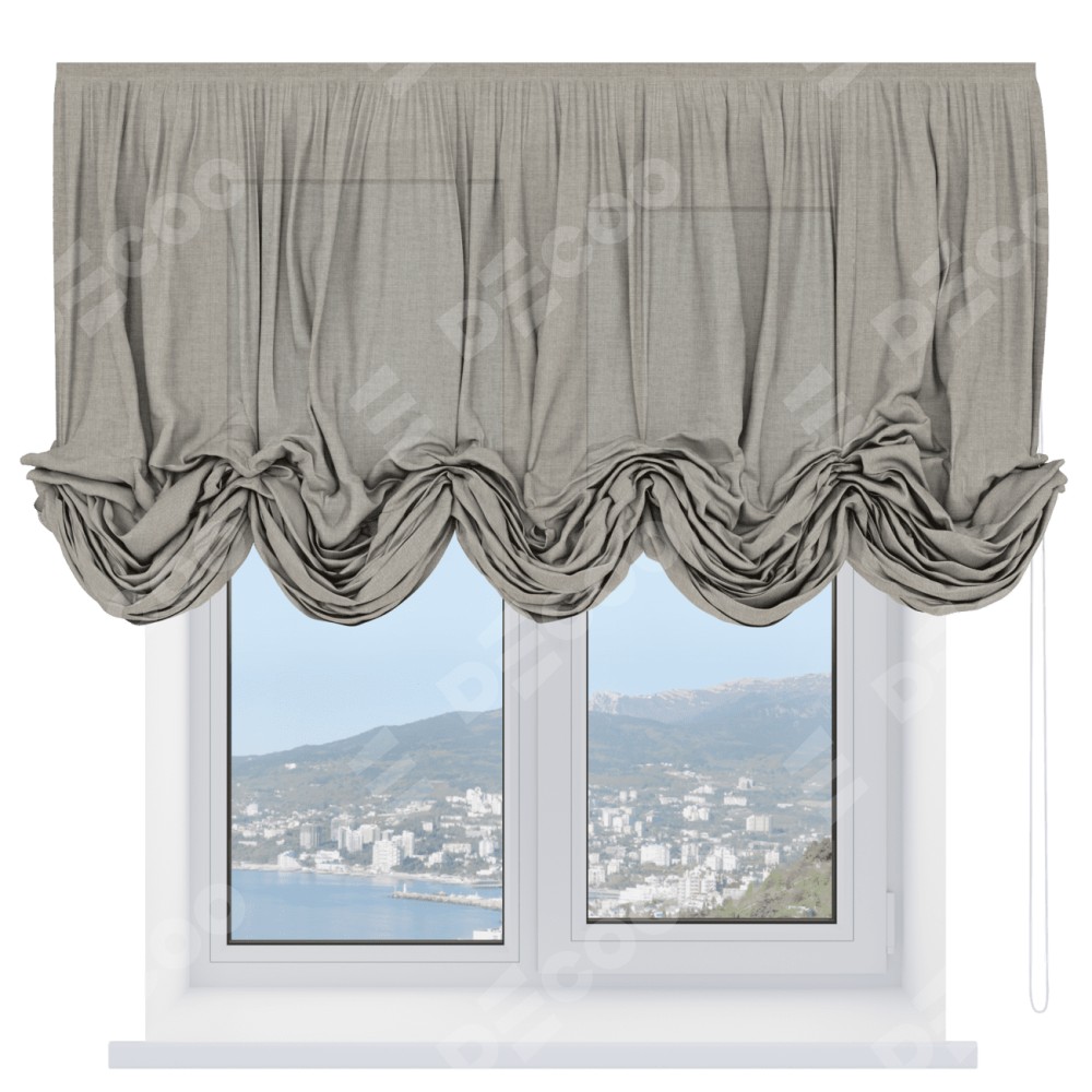 Австрийская штора производителя «Cortin», используется для проёма, пошита из ткани лён бежевый, артикул ткани 143839. Имеет универсальный механизм и подходит для монтажа: на потолок и на стену.
