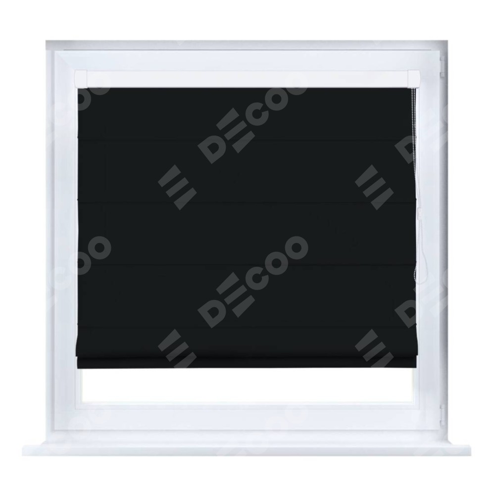 Римская штора производителя «Cortin», устанавливается на створку окна, пошита из ткани блэкаут однотонный черный, артикул 37. Штора шьётся по индивидуальным размерам, для данного типа римской шторы возможная ширина от 35 до 150 см., высота до 250 см.