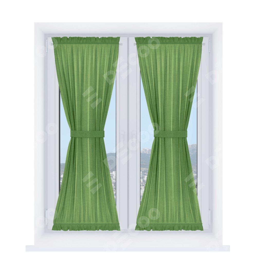 Штора «Песочные часы» производителя «Cortin», используется для створок окон и дверей, пошита из ткани вельвет салатовый, артикул ткани 87072.