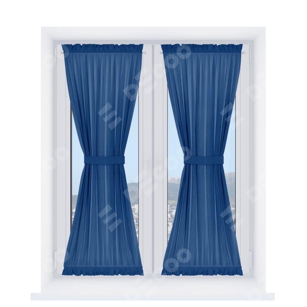 Штора «Песочные часы» производителя «Cortin», используется для створок окон и дверей, пошита из ткани вельвет синий, артикул ткани 85554.