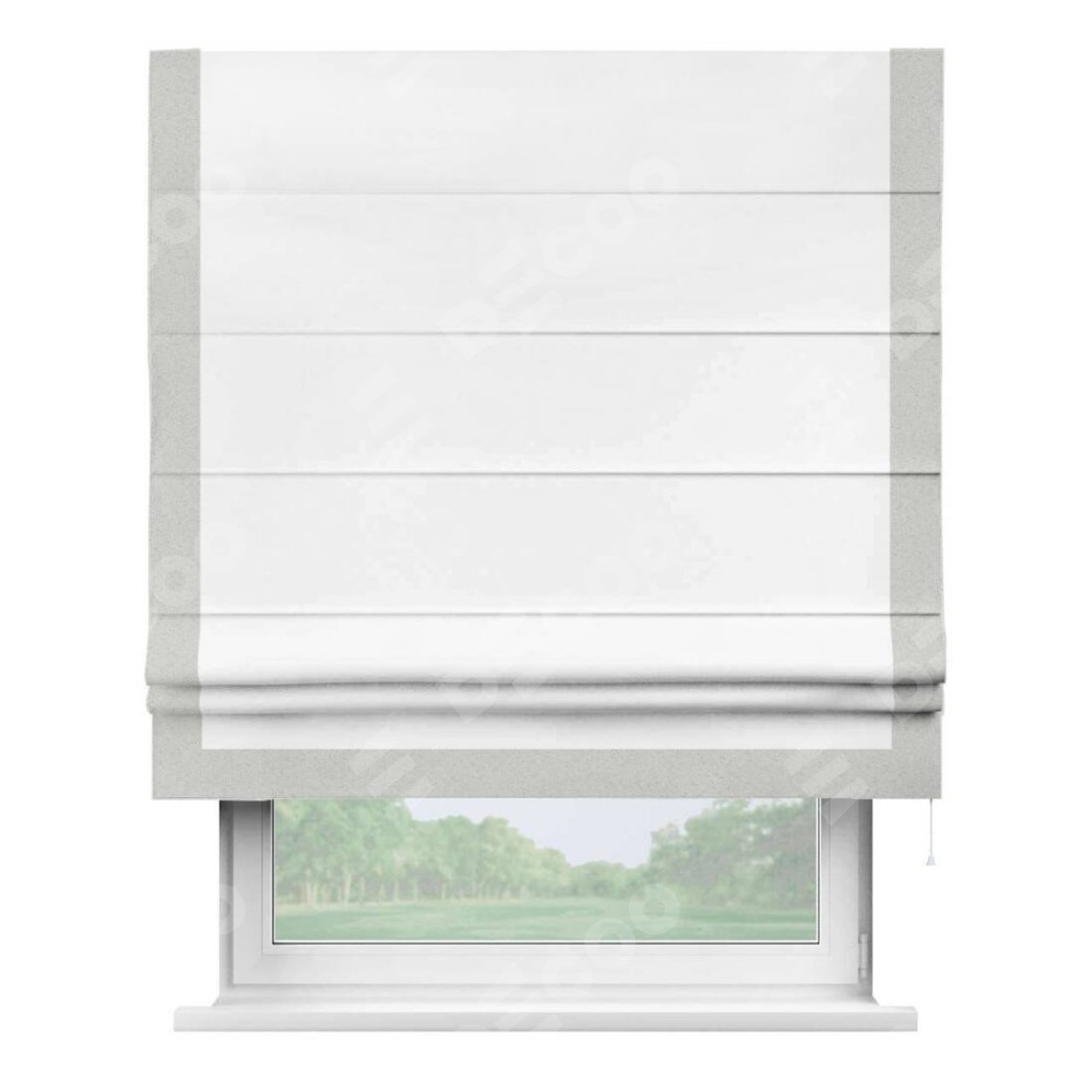 Римская штора «Кортин» для проёма, вайтаут однотонная белая с кантом Виктория