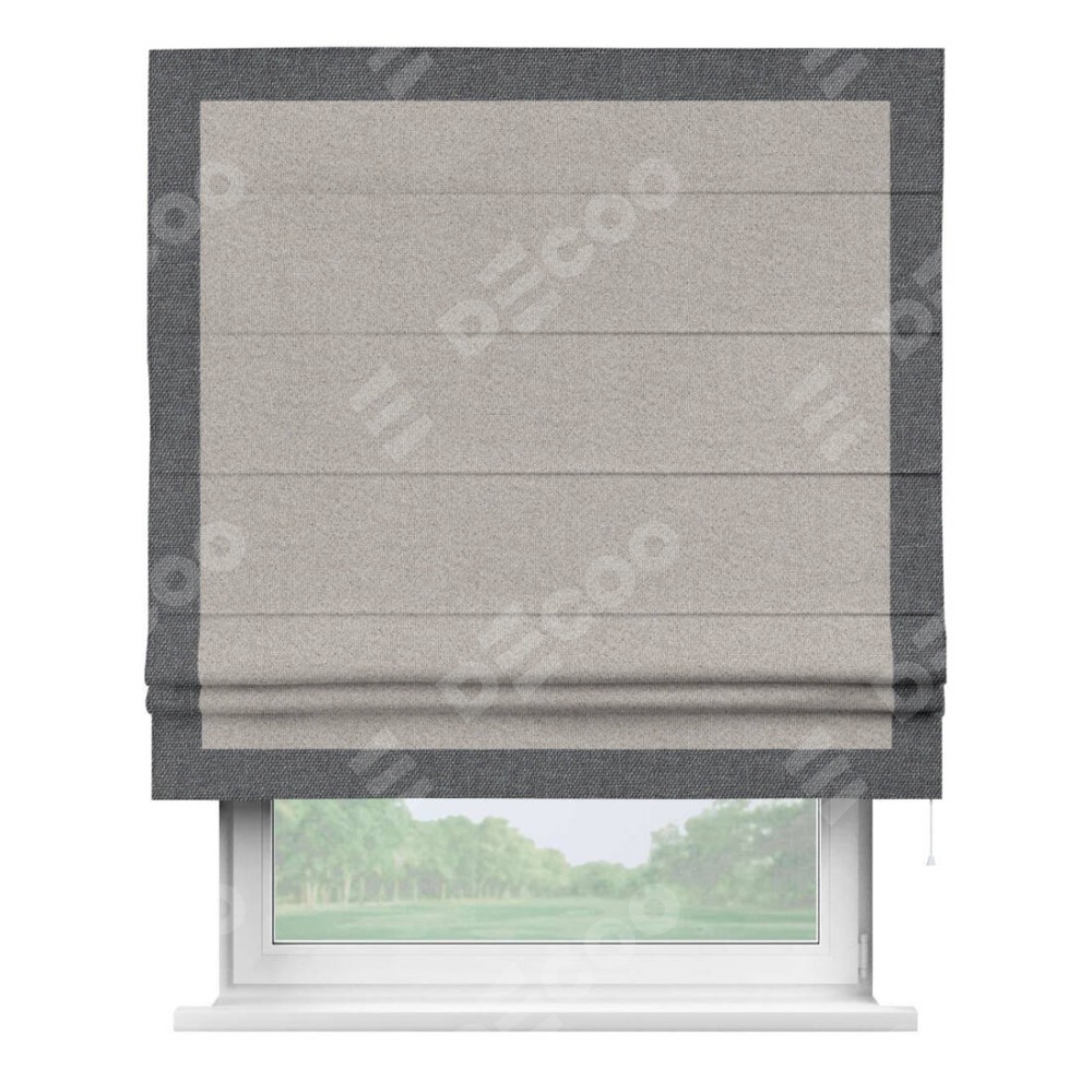 Римская штора «Кортин» для проема, лён димаут серо-бежевый с кантом Чесс