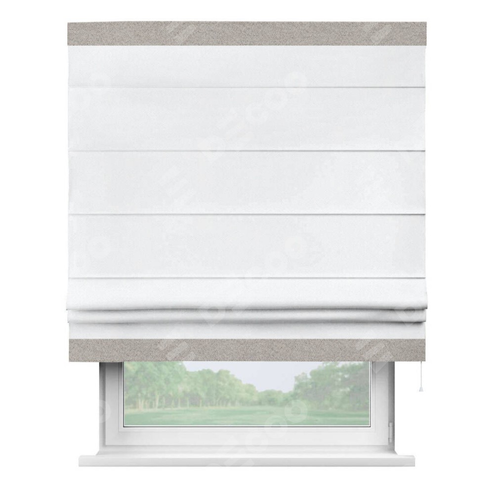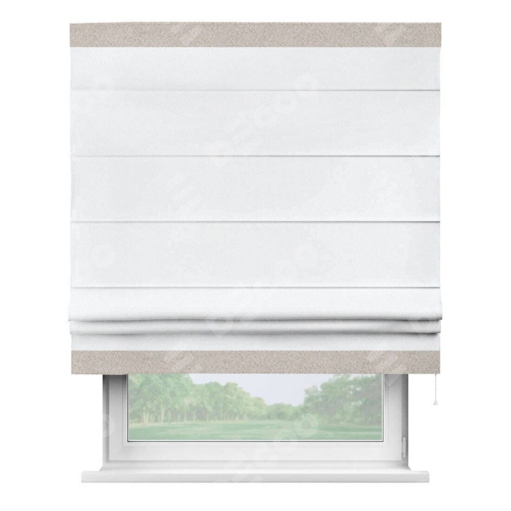 Римская штора «Кортин» для проема, лён димаут белый с кантом Горизонт