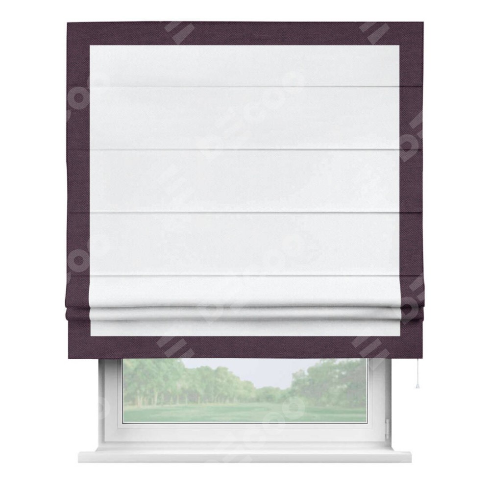 Римская штора «Кортин» для проема, лён димаут белый с кантом Чесс