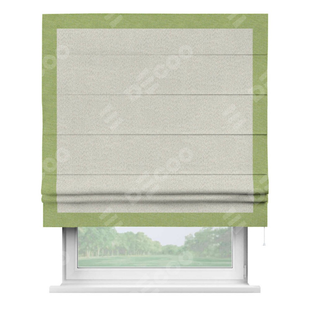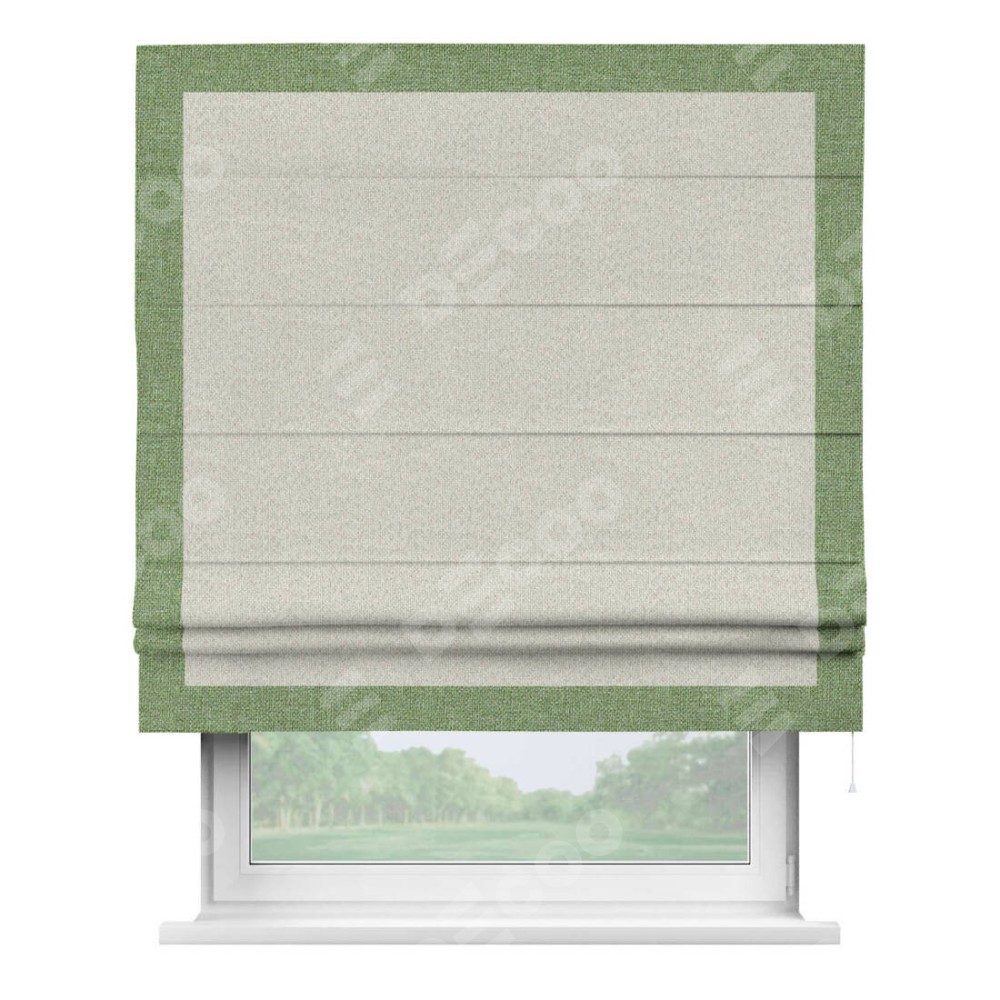 Римская штора «Cortin» для проёма, лён димаут светло-бежевый с кантом Чесс