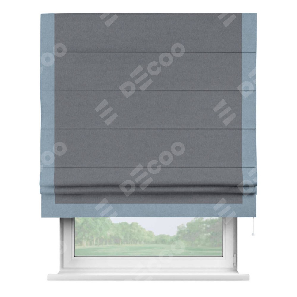 Классическая римская штора производителя «Cortin», пошита из ткани лён блэкаут тёмно-серый, артикул: 139663. Имеет универсальный механизм и подходит для монтажа: на потолок, на стену и в нишу.