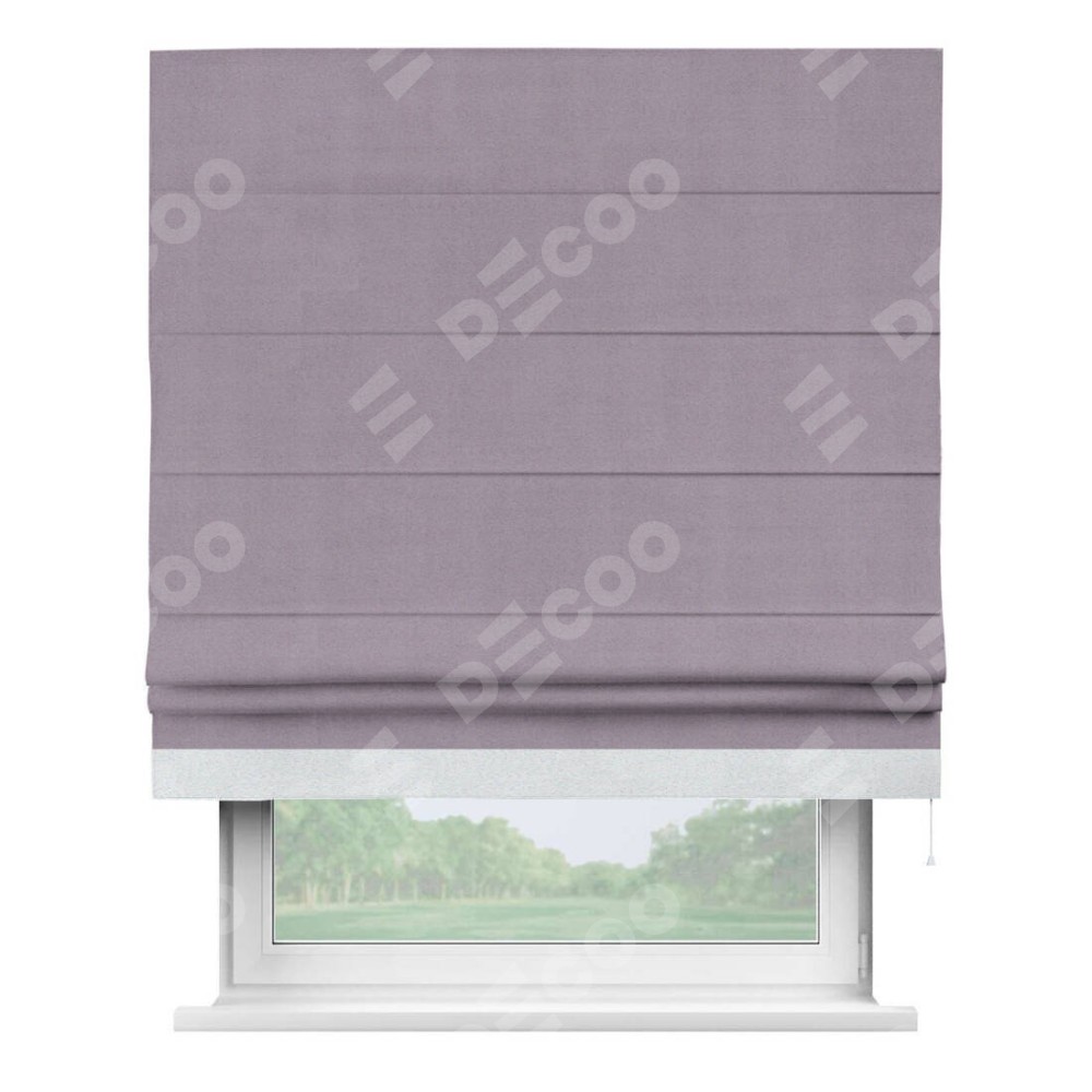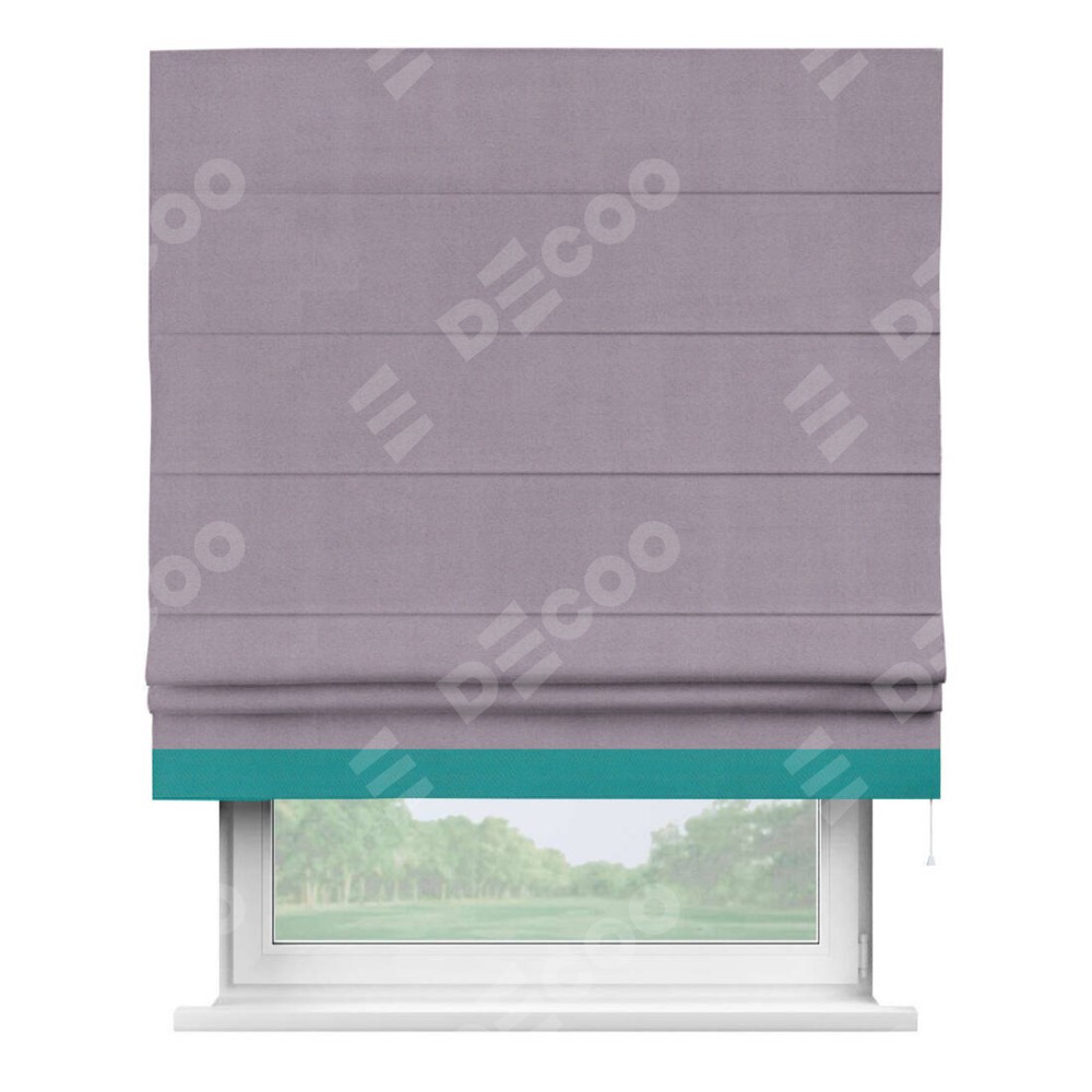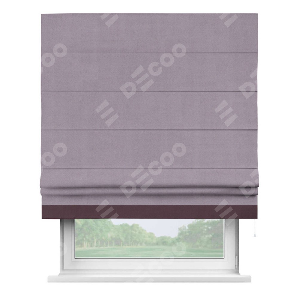Римская штора «Кортин» для проёма, блэкаут однотонный лиловый с кантом Джестер