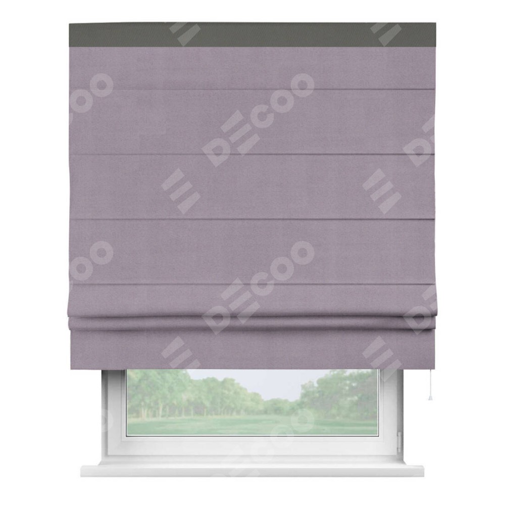 Римская штора «Кортин» для проёма, блэкаут однотонный лиловый с кантом Кинг