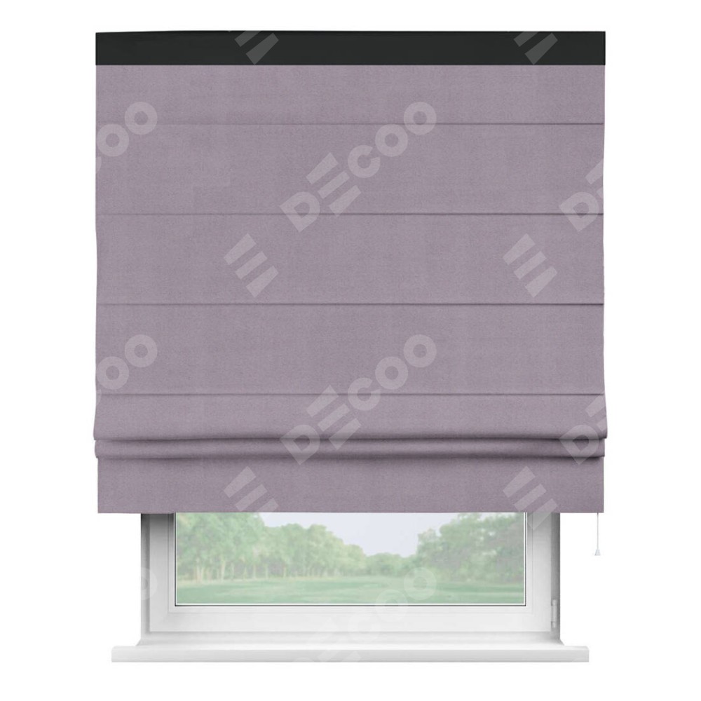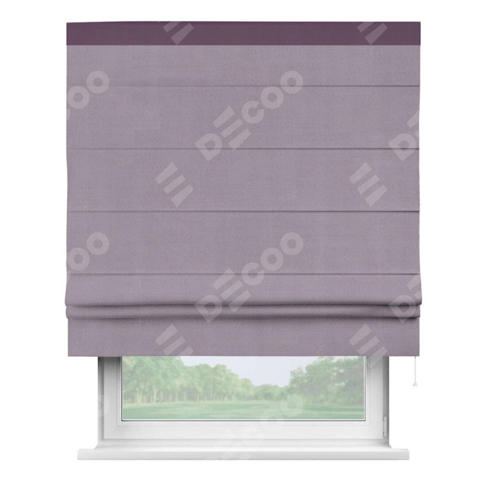 Классическая римская штора производителя «Cortin», пошита из ткани однотонный блэкаут лиловый, артикул: 91577. Имеет универсальный механизм и подходит для монтажа: на потолок, на стену и в нишу.