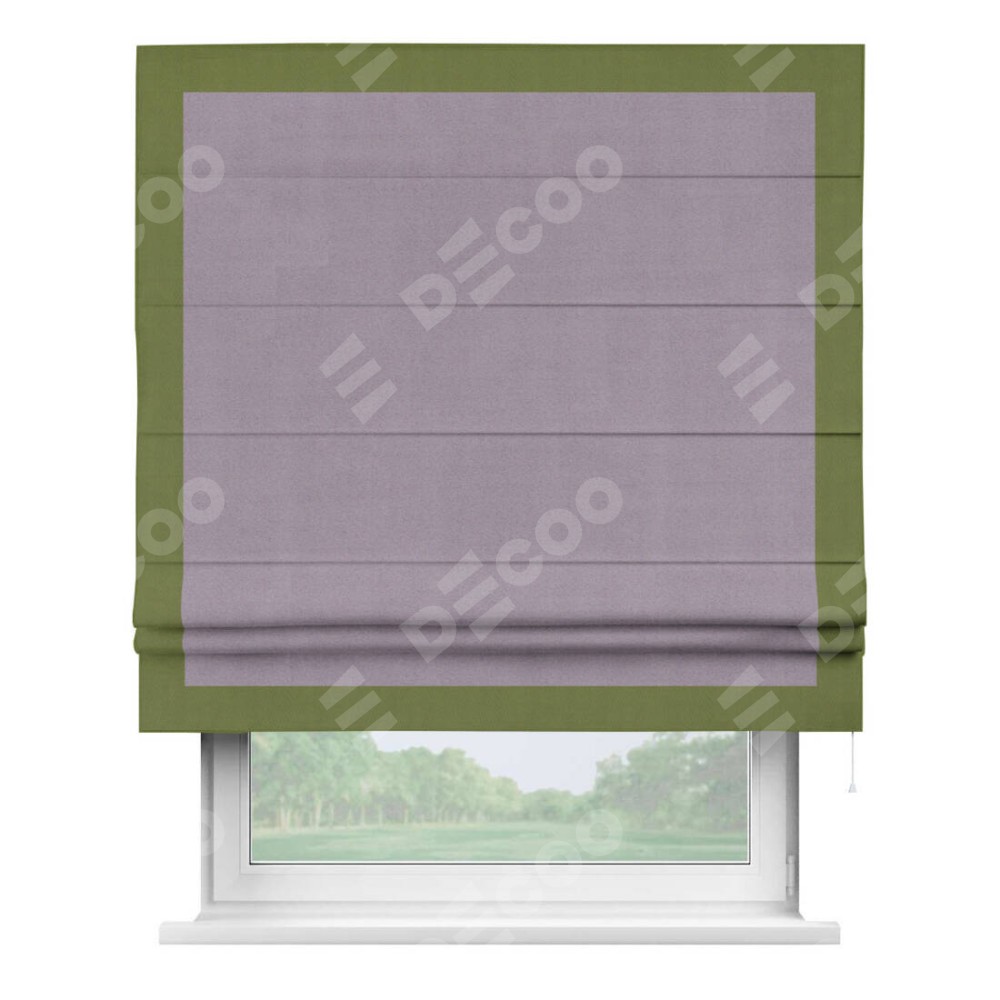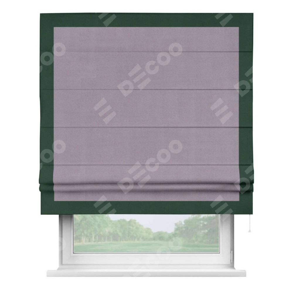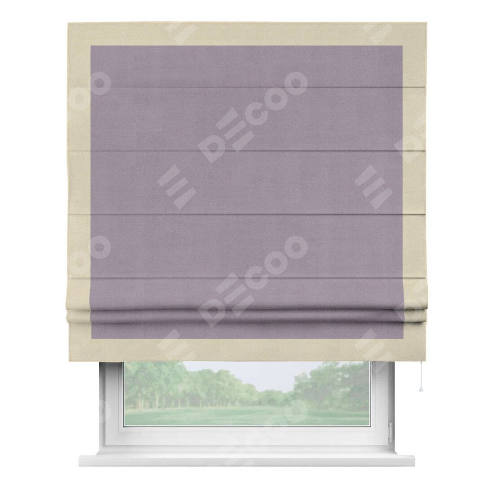 Римская штора «Кортин» для проёма, блэкаут однотонный лиловый с кантом Чесс