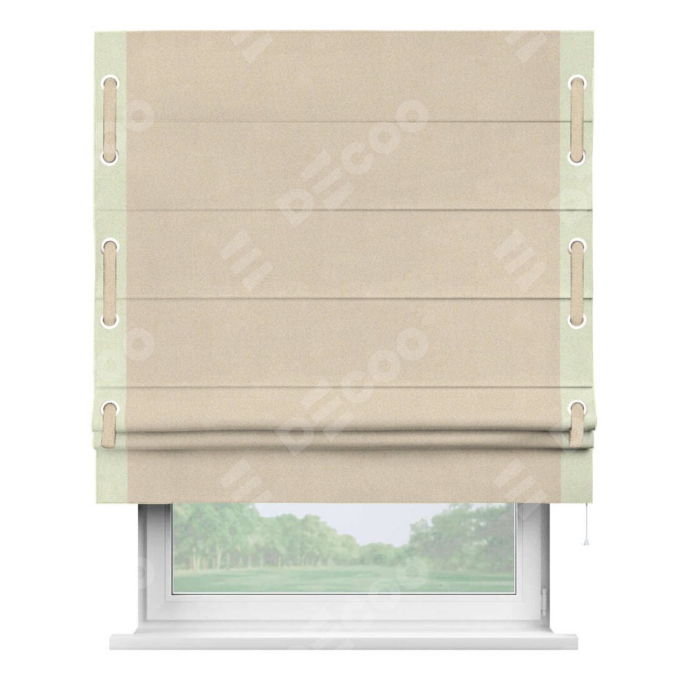 Римская штора «Cortin» для проёма, блэкаут однотонный кофейно-бежевый с кантом Стрим Дуо (люверсы с пояском)