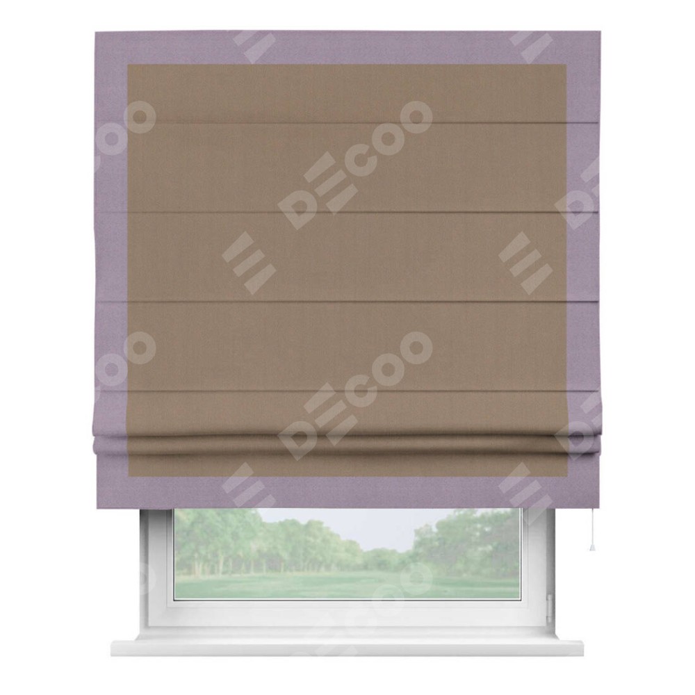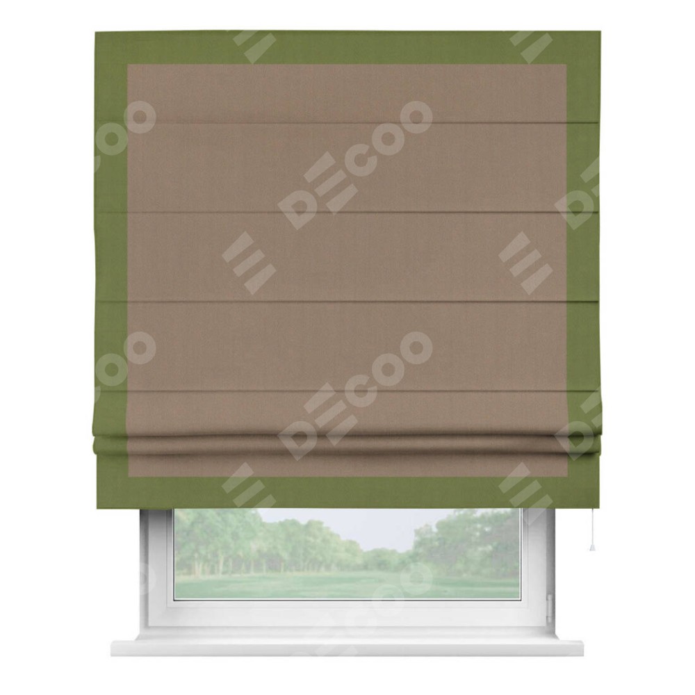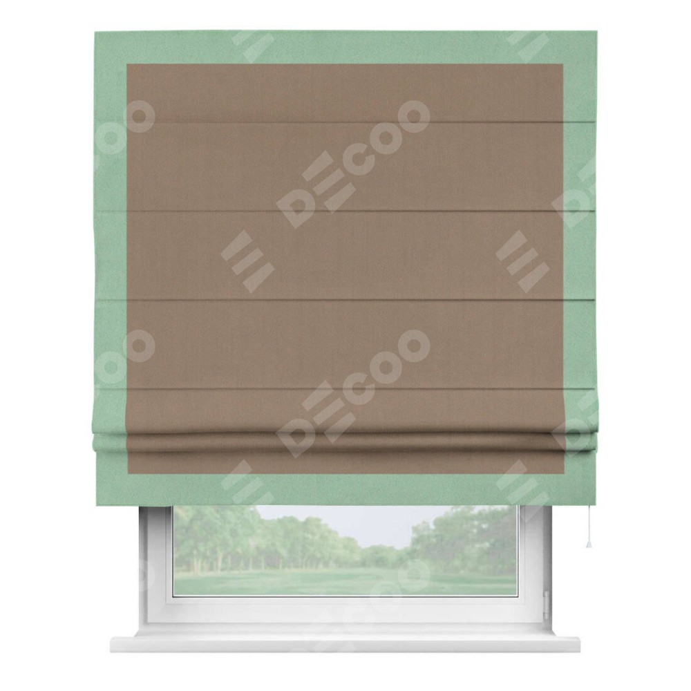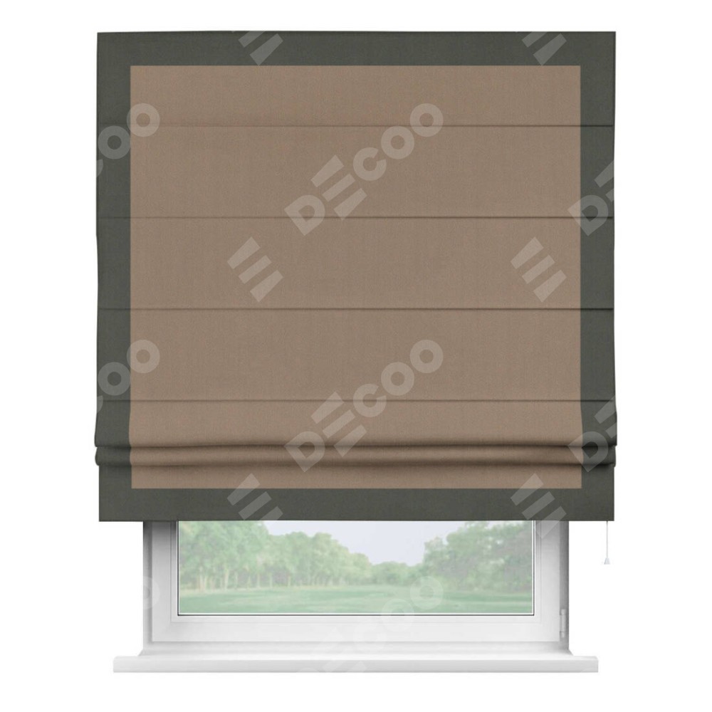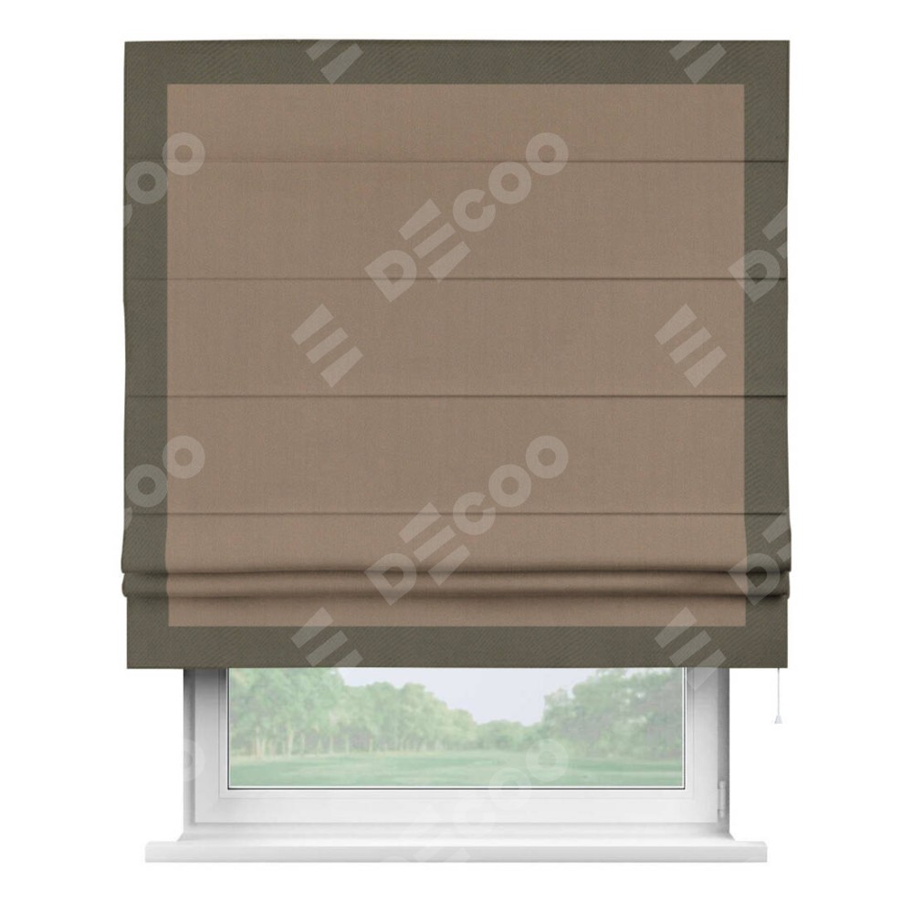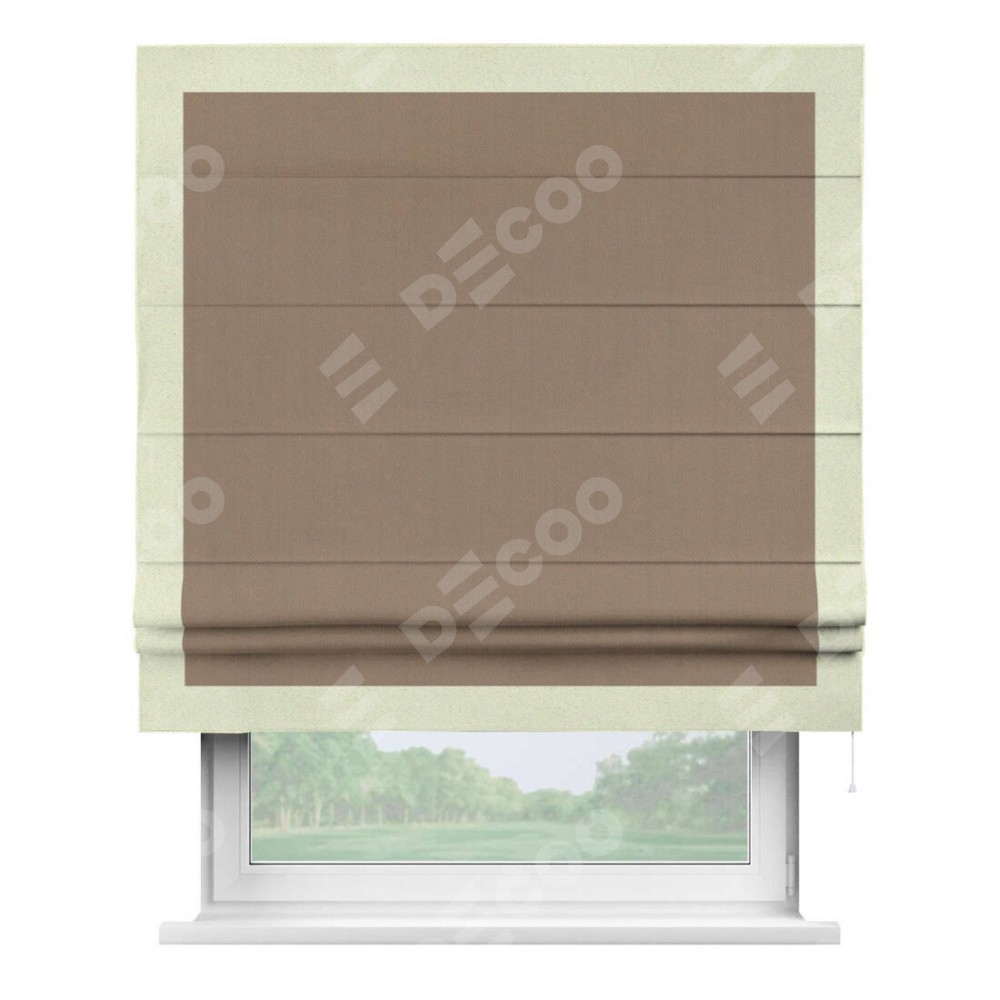 Римская штора «Cortin» для проёма, ткань блэкаут однотонный кофейно-бежевый с кантом Чесс